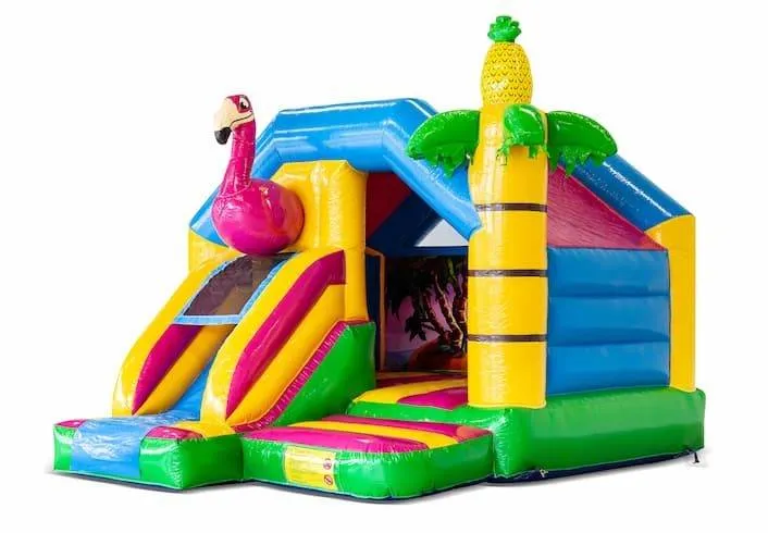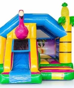 Ce chateau gonflable en location, d’une dimension de 4m sur 5m, peut être installé en intérieur comme en extérieur. Ce château gonflable couvert avec toboggan permettra à vos enfants de s’amuser en toute sécurité (ils pourront grimper et glisser sur le toboggan latéral ). Ce château gonflable à louer peut recevoir jusqu’à 8 personnes en même temps et se gonfle facilement. Il est fourni avec une soufflerie/gonfleur et une allonge de 20 mètres. Attention, il faut prévoir une arrivée électrique.