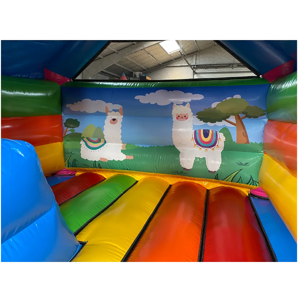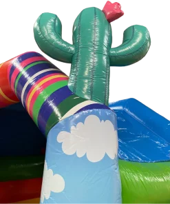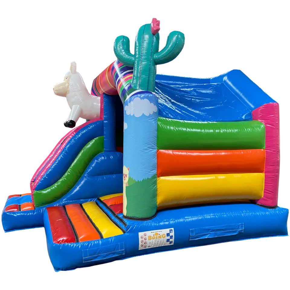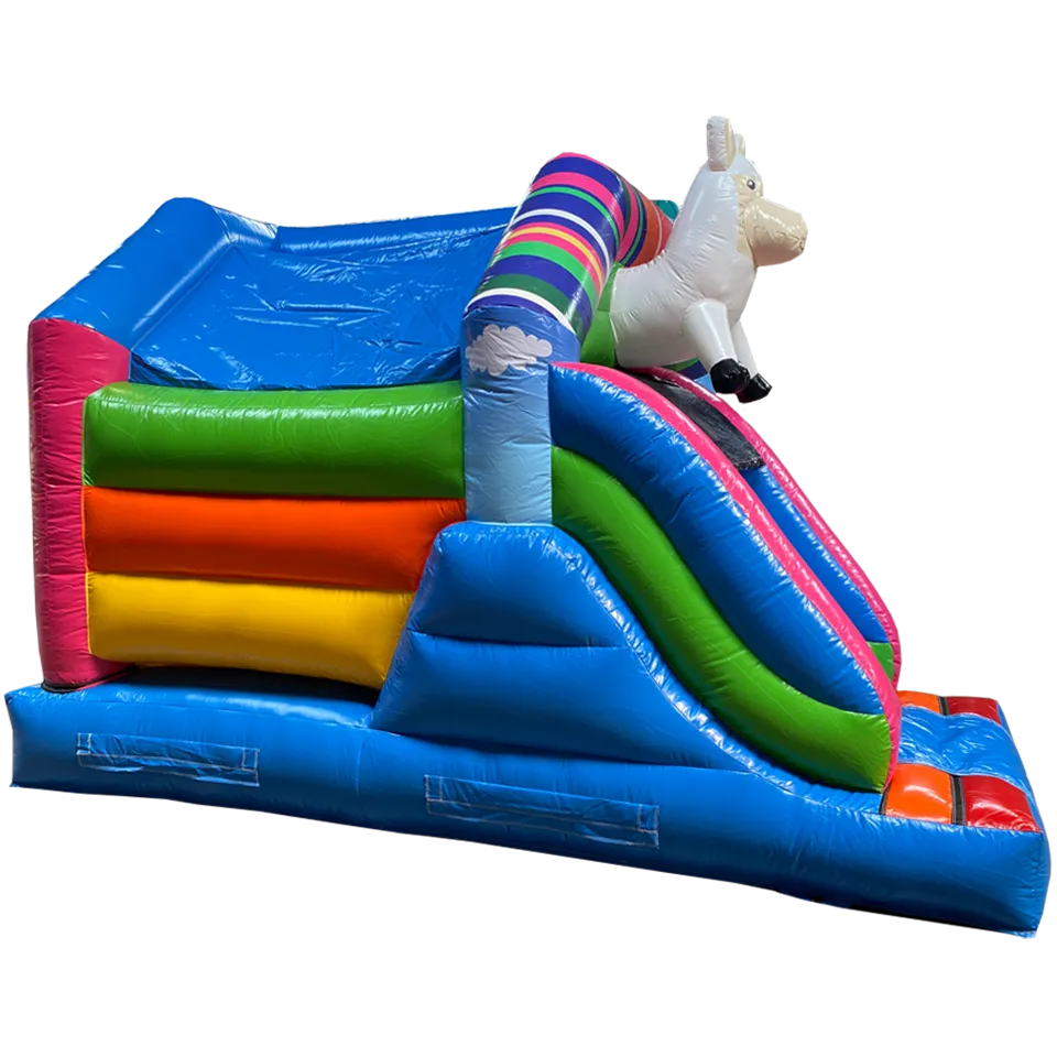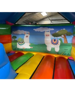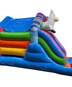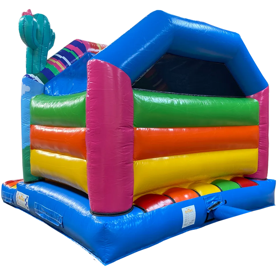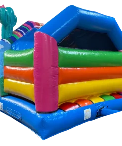 Ce chateau gonflable en location, d’une dimension de 3.75m sur 4.70m, peut être installé en intérieur comme en extérieur. Ce château gonflable couvert avec toboggan permettra à vos enfants de s’amuser en toute sécurité (ils pourront grimper et glisser sur le toboggan latéral ). Ce château gonflable à louer peut recevoir jusqu’à 8 personnes en même temps et se gonfle facilement. Il est fourni avec une soufflerie/gonfleur et une allonge de 20 mètres. Attention, il faut prévoir une arrivée électrique.