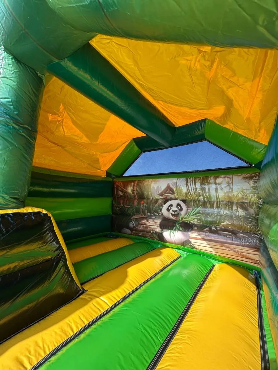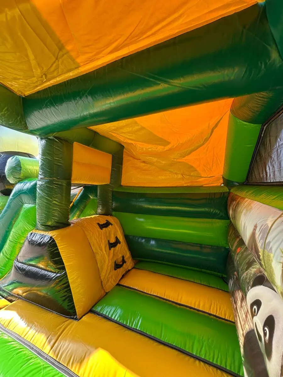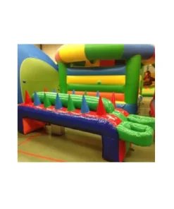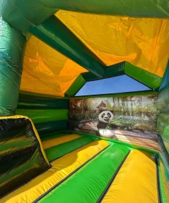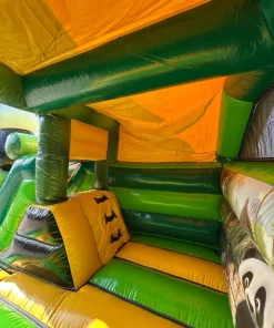 Ce chateau gonflable en location, d’une dimension de 4,7m sur 3,7m, peut être installé en intérieur comme en extérieur. Ce château gonflable couvert avec toboggan permettra à vos enfants de s’amuser en toute sécurité (ils pourront grimper et glisser sur le toboggan). Ce château gonflable à louer peut recevoir jusqu’à 5 personnes en même temps et se gonfle facilement. Il est fourni avec une soufflerie/gonfleur et une allonge de 20 mètres. Attention, il faut prévoir une arrivée électrique.