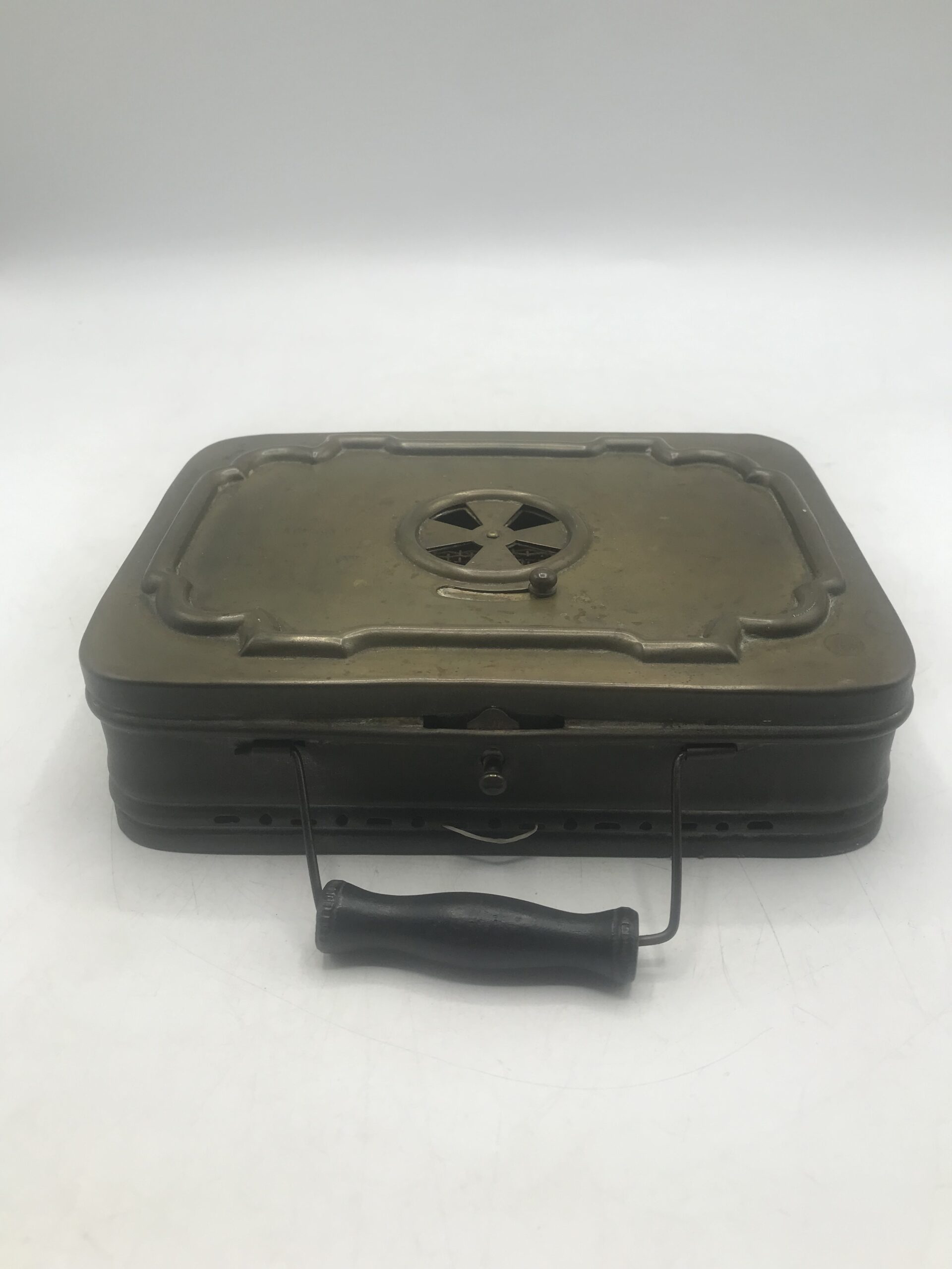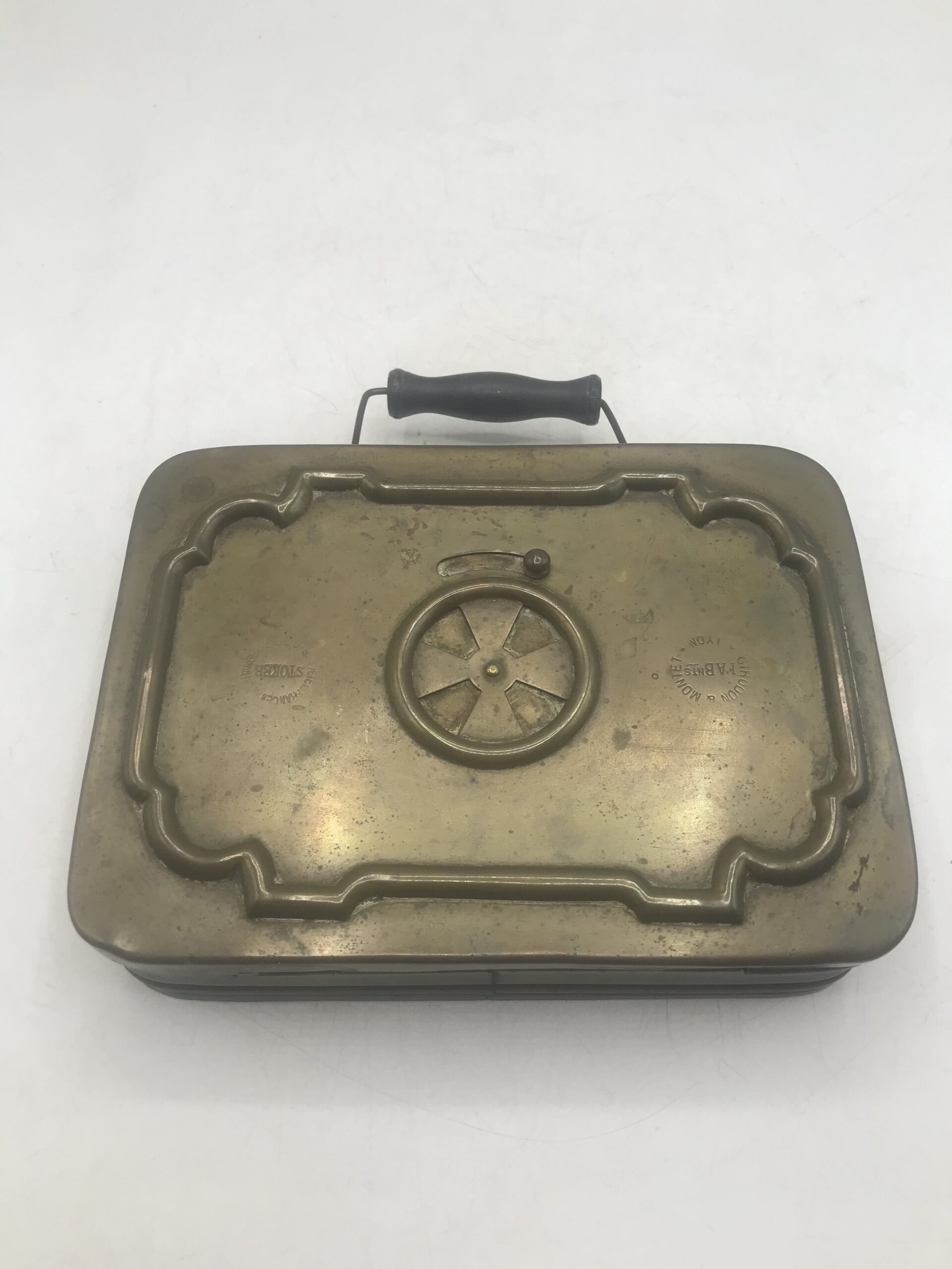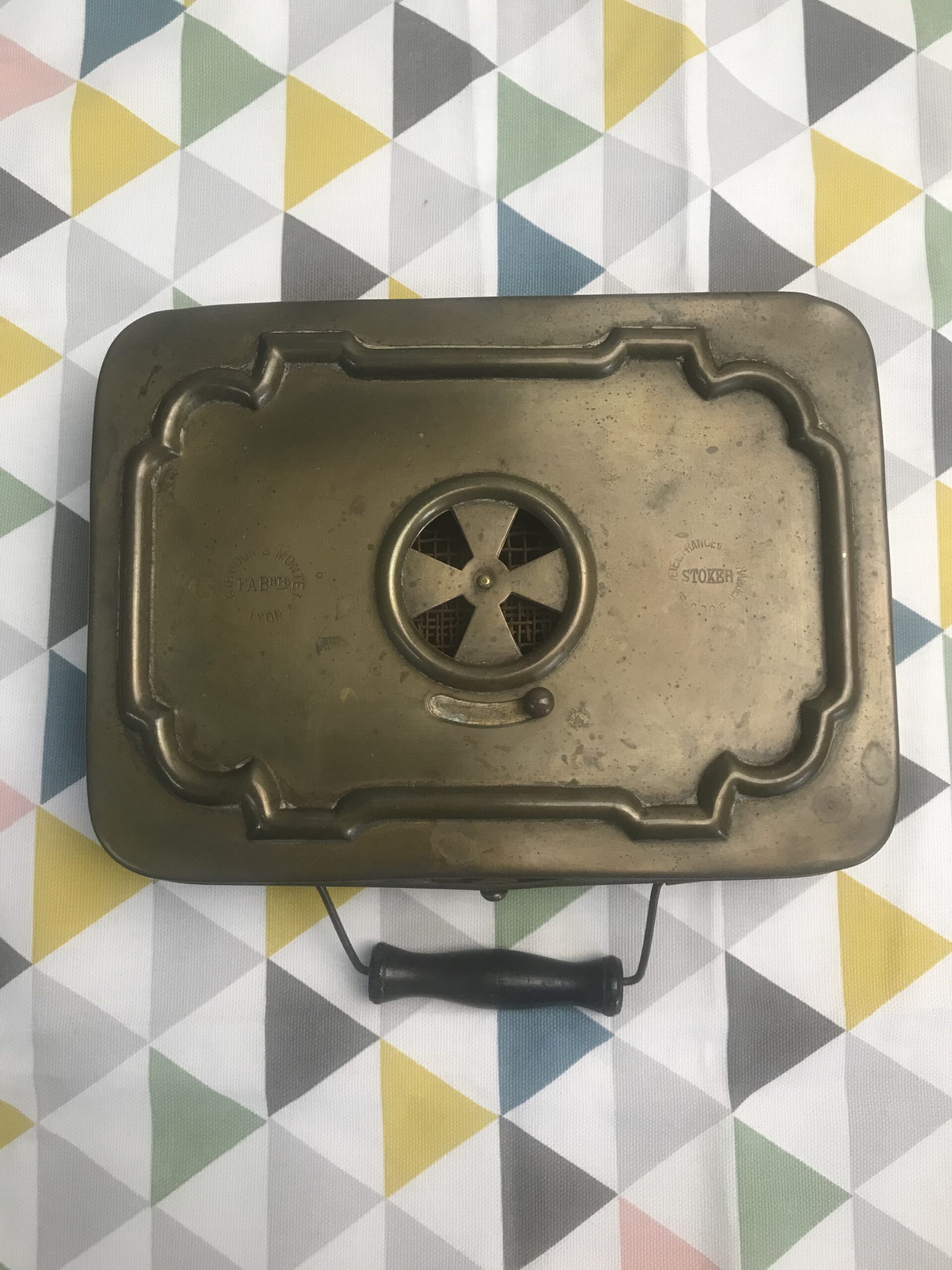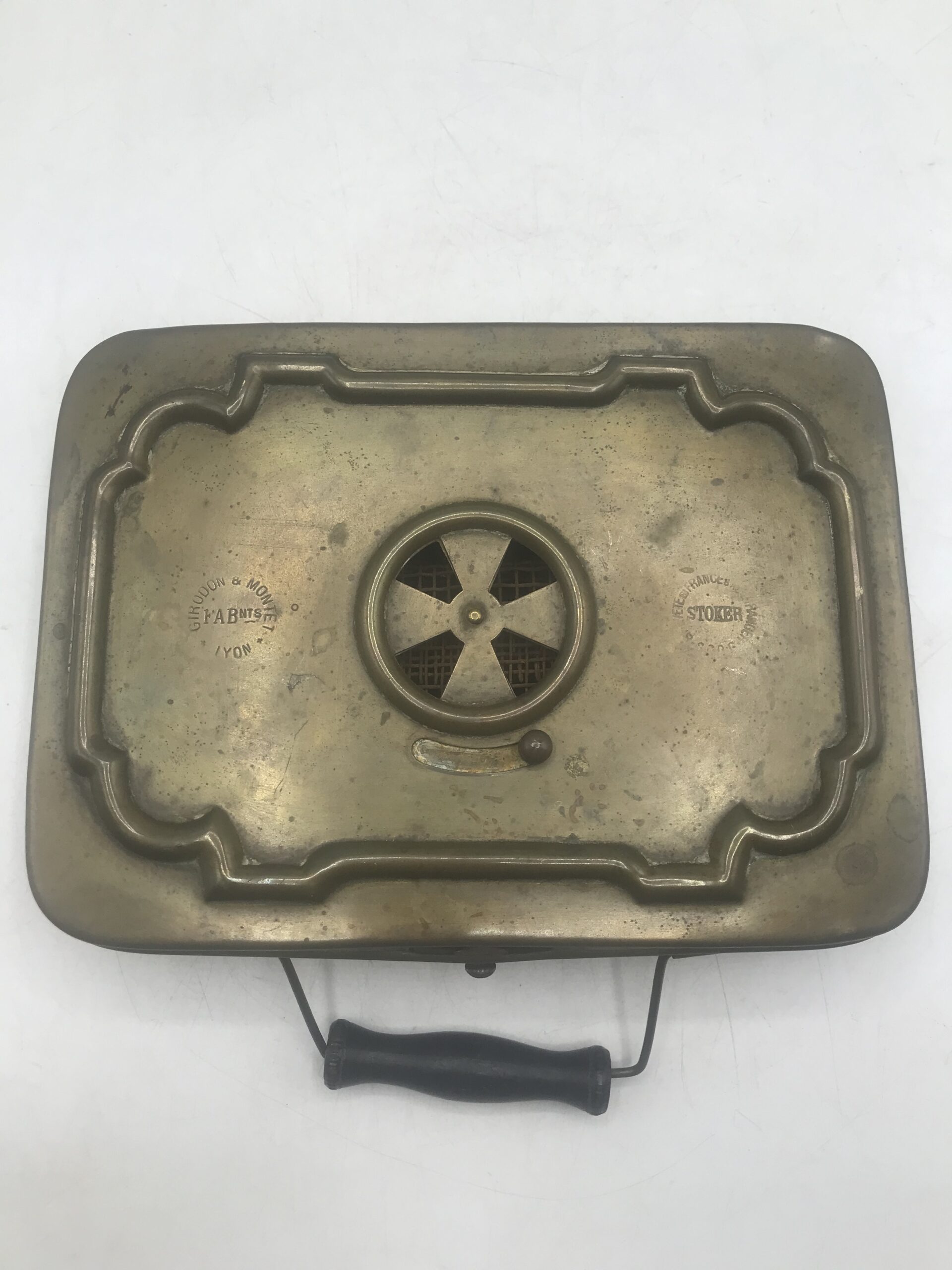 Chaufferette en laiton. Ancienne chaufferette en laiton. Elle est dans son jus (cf photos). Un objet ancien porteur de bien des histoires, il est le témoin de l’évolution du temps et des inventions pour se chauffer. Un beau témoignage et objet de collection. Parfait pour les amateurs du temps passé, les collecteurs de souvenirs, ajouter le a vos autres objets rares et curiosités. Il est noté sur le dessus « stoker » France et « FABnts Lyon. Avis aux connaisseurs de cette époque, il n’attend que vous pour vivre sa seconde vie.
