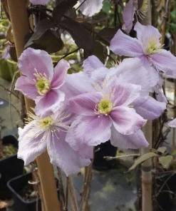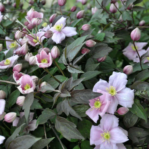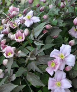 La clématite montana Mayleen est une plante grimpante vivace au développement très rapide. Sa hauteur peut atteindre jusqu’à 6 mètres. Ses vrilles lui permettent de s’accrocher à un support : treillis, grillage, clôture, muret… vous avez le choix.