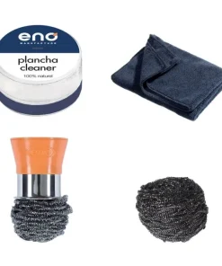 Nécessaire de nettoyage pour plancha: boule inox, microfibre, cleaner