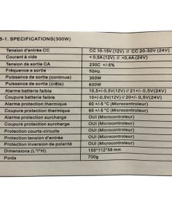 Convertisseur/transformateur de tension soit 12V, soit 24V en 230 V max 300 W avec sortie USB –