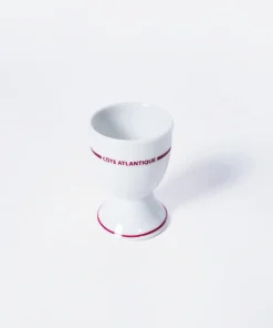Coquetier en porcelaine blanche avec une impression rouge « Côte Atlantique » fabriqué au Portugal dans la région de Porto. Un accessoire indispensable pour votre table.
