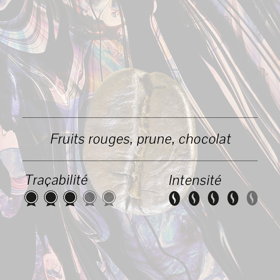 Le Costa Rica La Pantera est un café d’exception qui se distingue par son profil de tasse unique. Dès la première gorgée, vous serez séduit par son arôme intense, évoquant des notes de fruits rouges. Son acidité vive donne du caractère à ce café, tandis que son corps doux et complexe assure une expérience gustative harmonieuse. Le final en bouche est particulièrement agréable, avec des réminiscences de prune et de chocolat qui prolongent le plaisir de la dégustation.