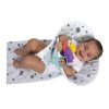 - Deux trous aident à repositionner régulièrement le corps et les jambes du bébé, mais aussi à le maintenir confortable.