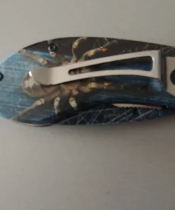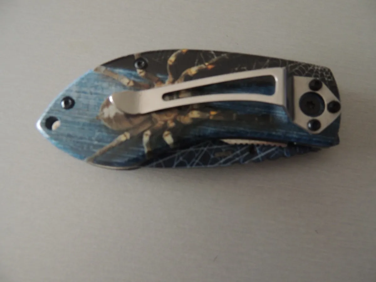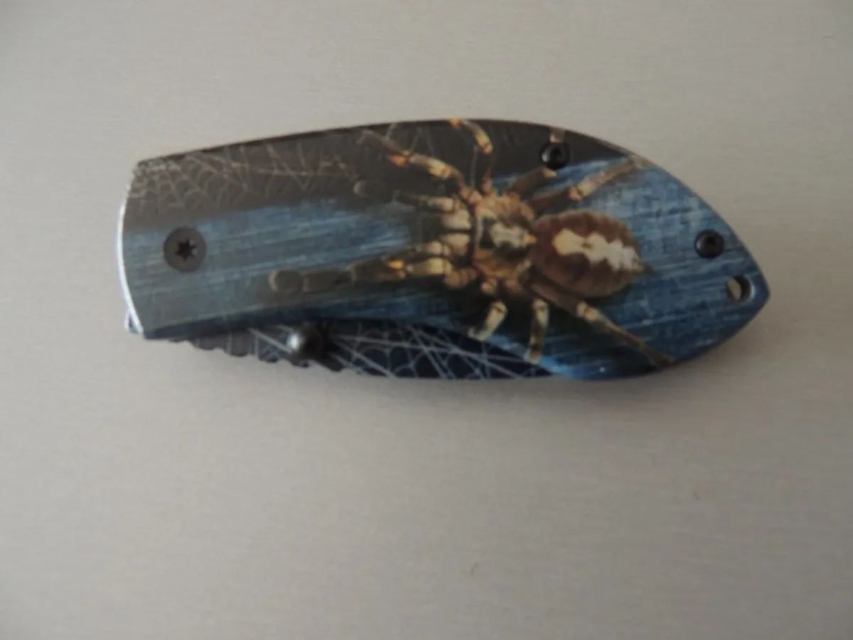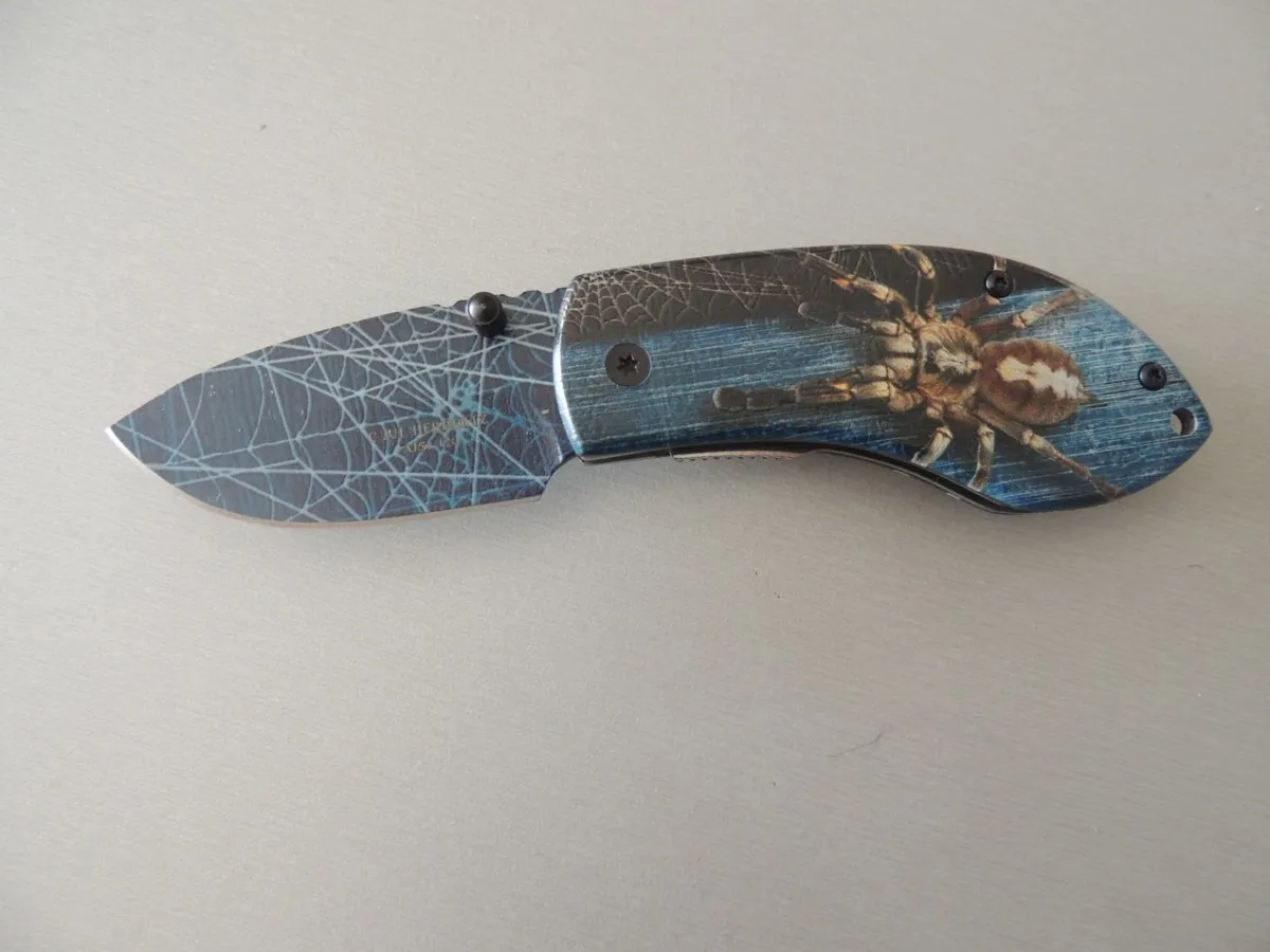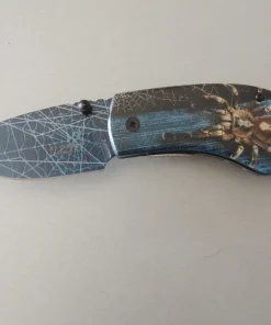 Couteaux de poche Herbertz 578409, manche décor araignée, lame acier inoxydable 420 bleu à cran intérieur.