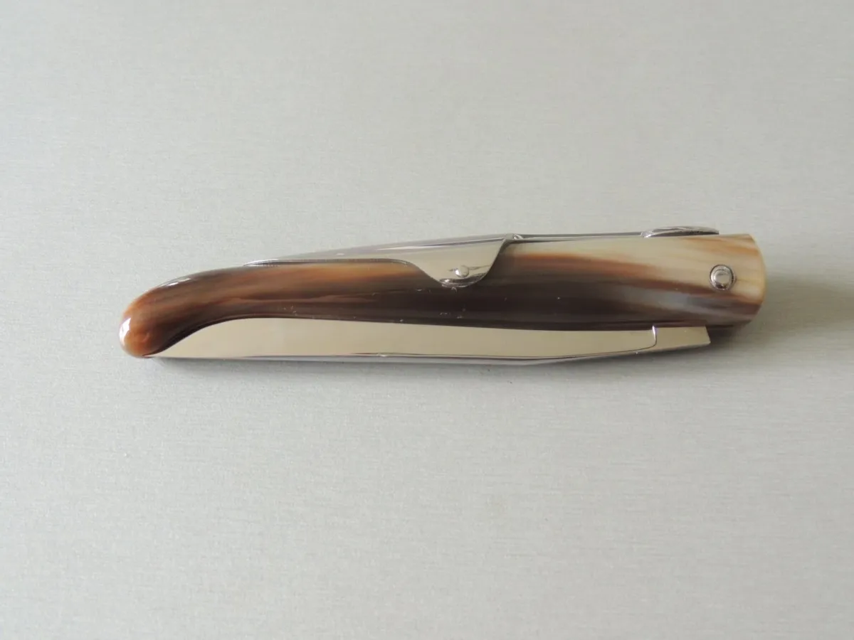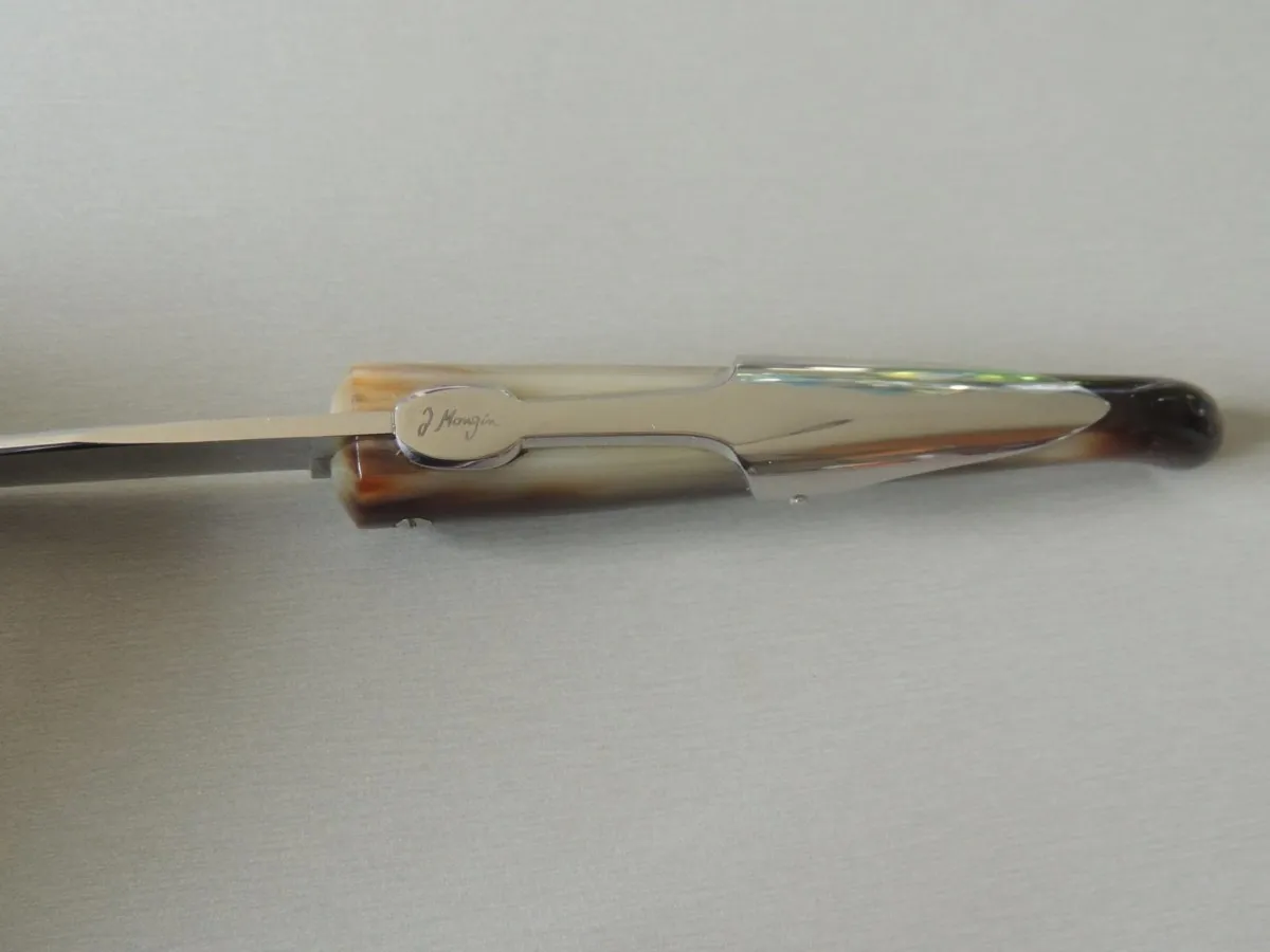 Couteau Bieslois corne blonde flammée par Jacques Mongin.