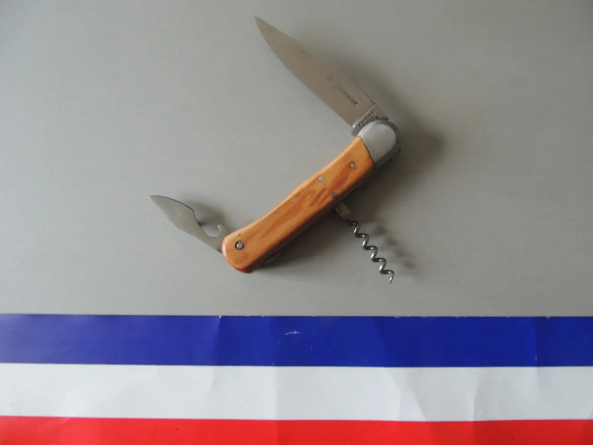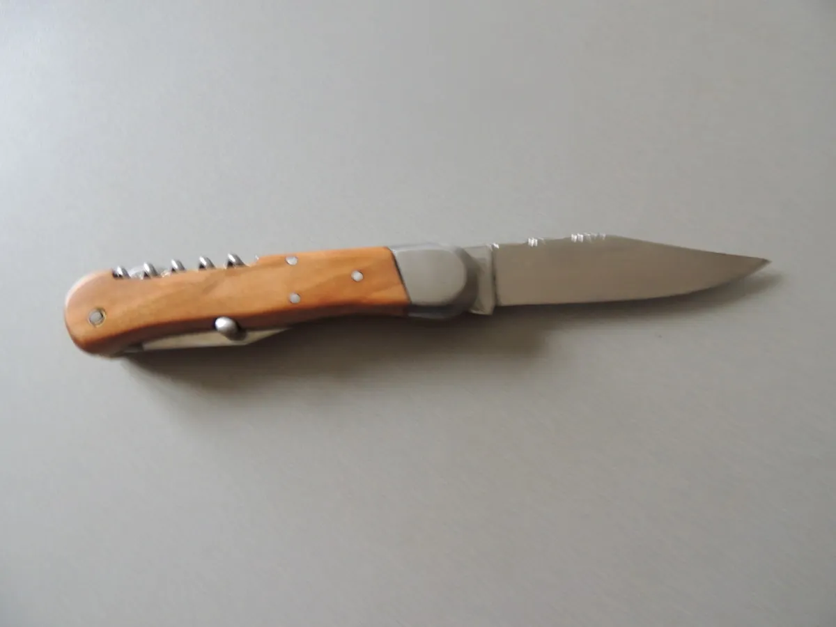 Lame avec onglet, en acier inoxydable, tire bouchon, ouvre boite/ décapsuleur.