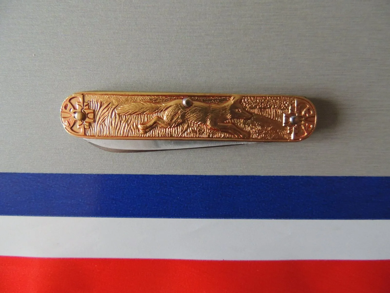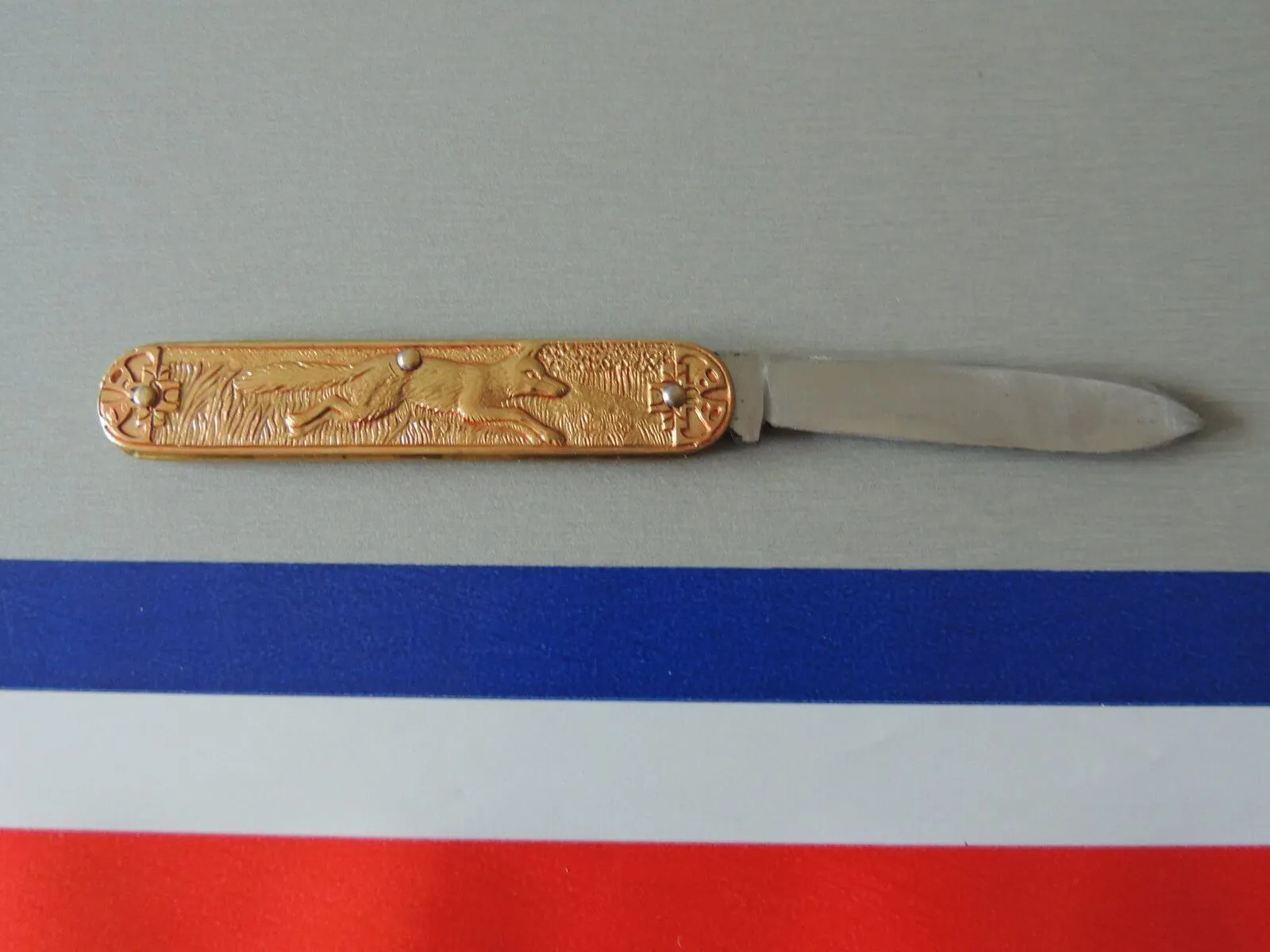 Couteau Coursolle laiton « PETIT RENARD CHASSE A COUR », 1 pièce.