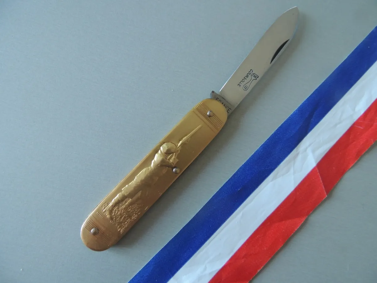Couteau Coursolle laiton scène « Chasseur », 1 pièces.
