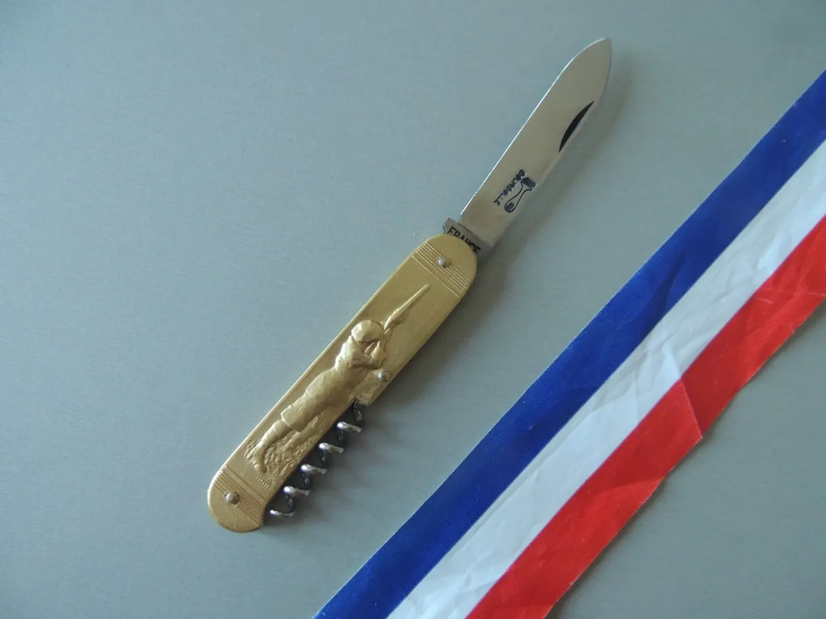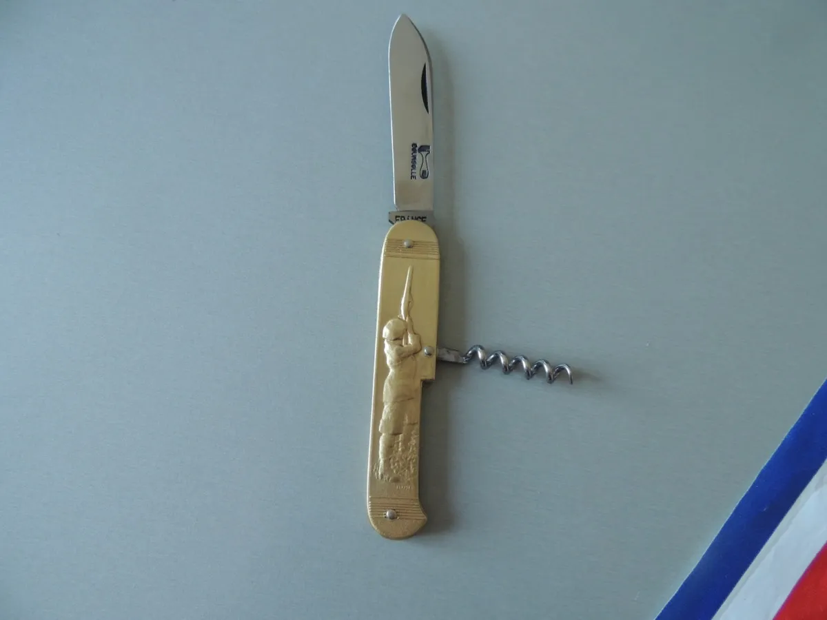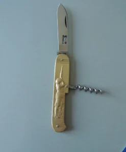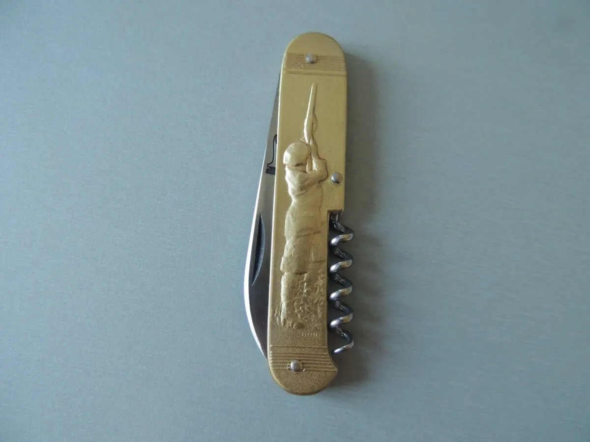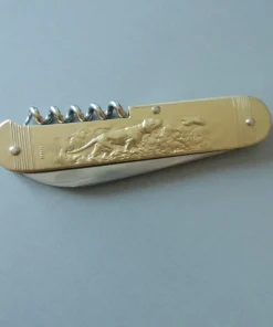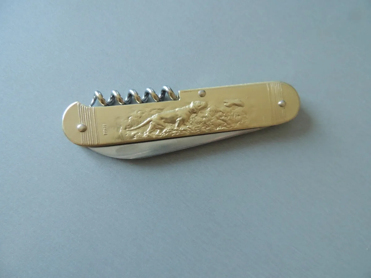 Couteau Coursolle laiton scène « Chasseur », 2 pièces.