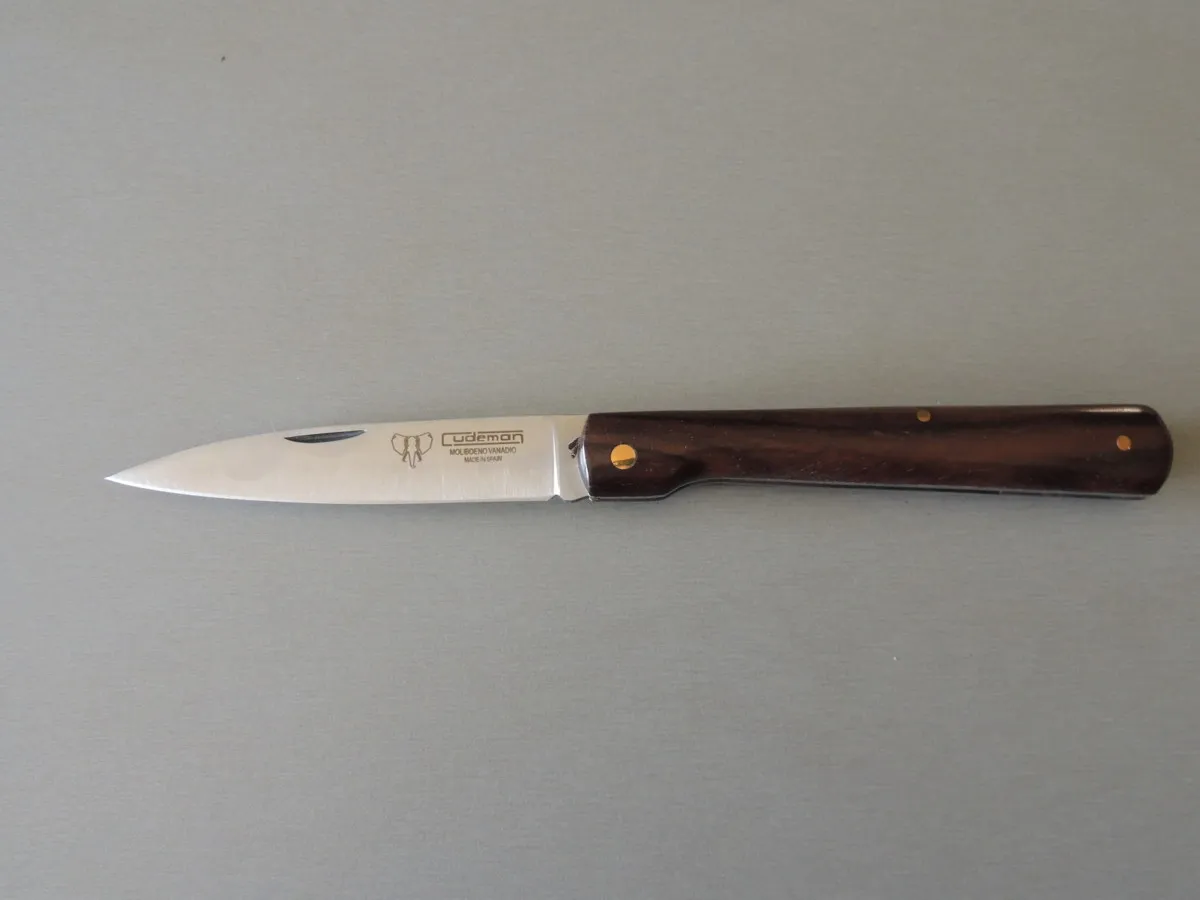 Lame acier inox satiné, plein manche 11 cm cocobolo.