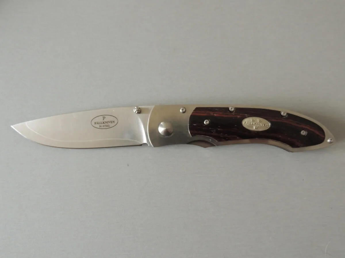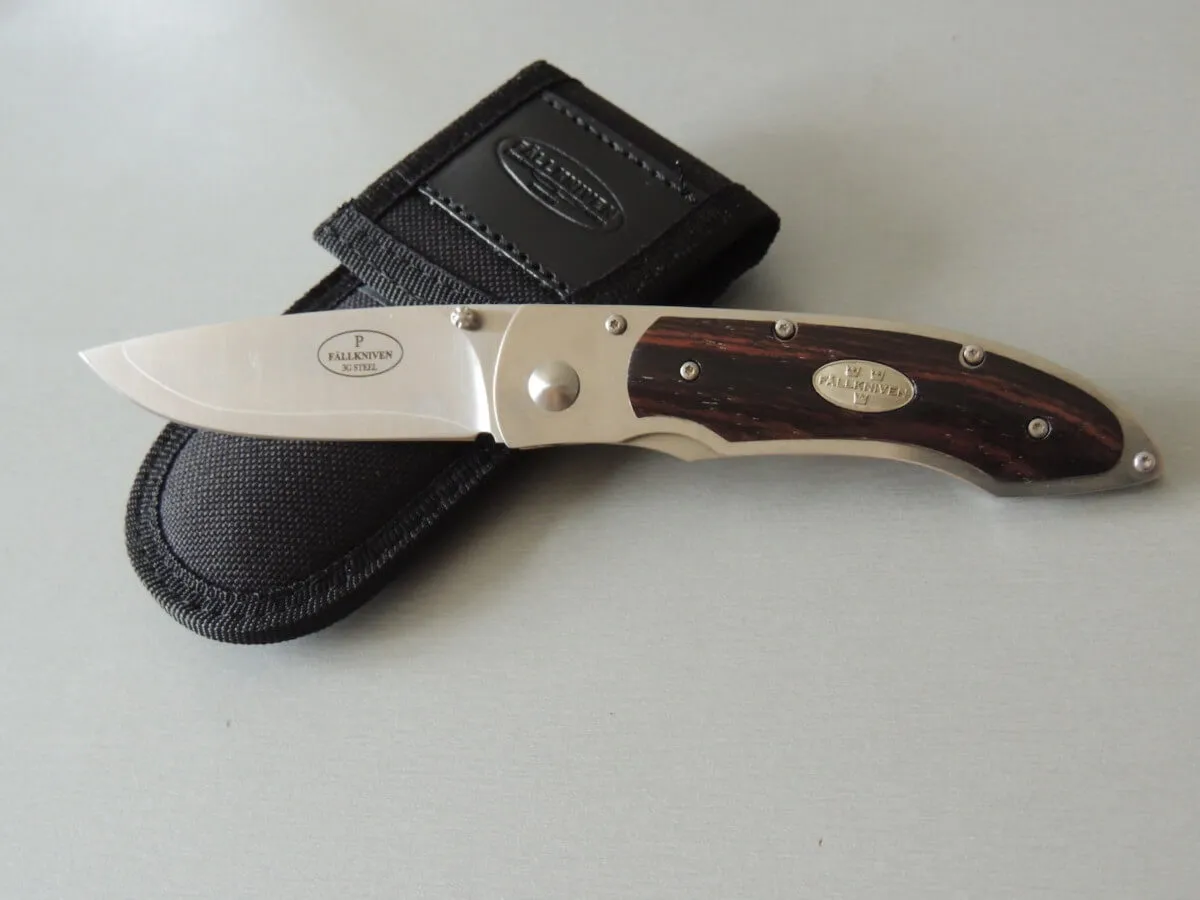 Couteau de chasse Fallkniven P3Gc en poudre d’acier laminé 3G et lame de 7,7 cm, avec manche Cocobolo et housse Cordura.