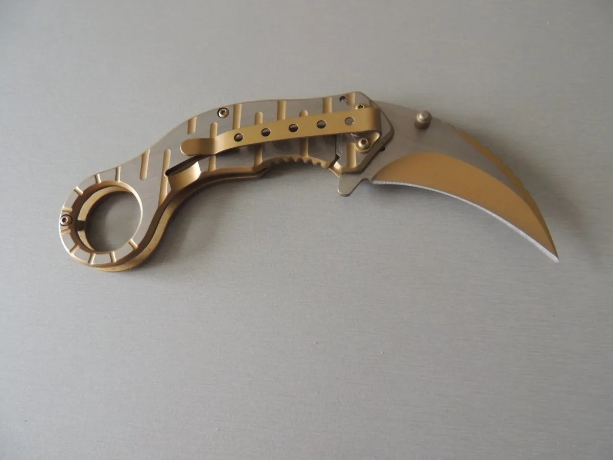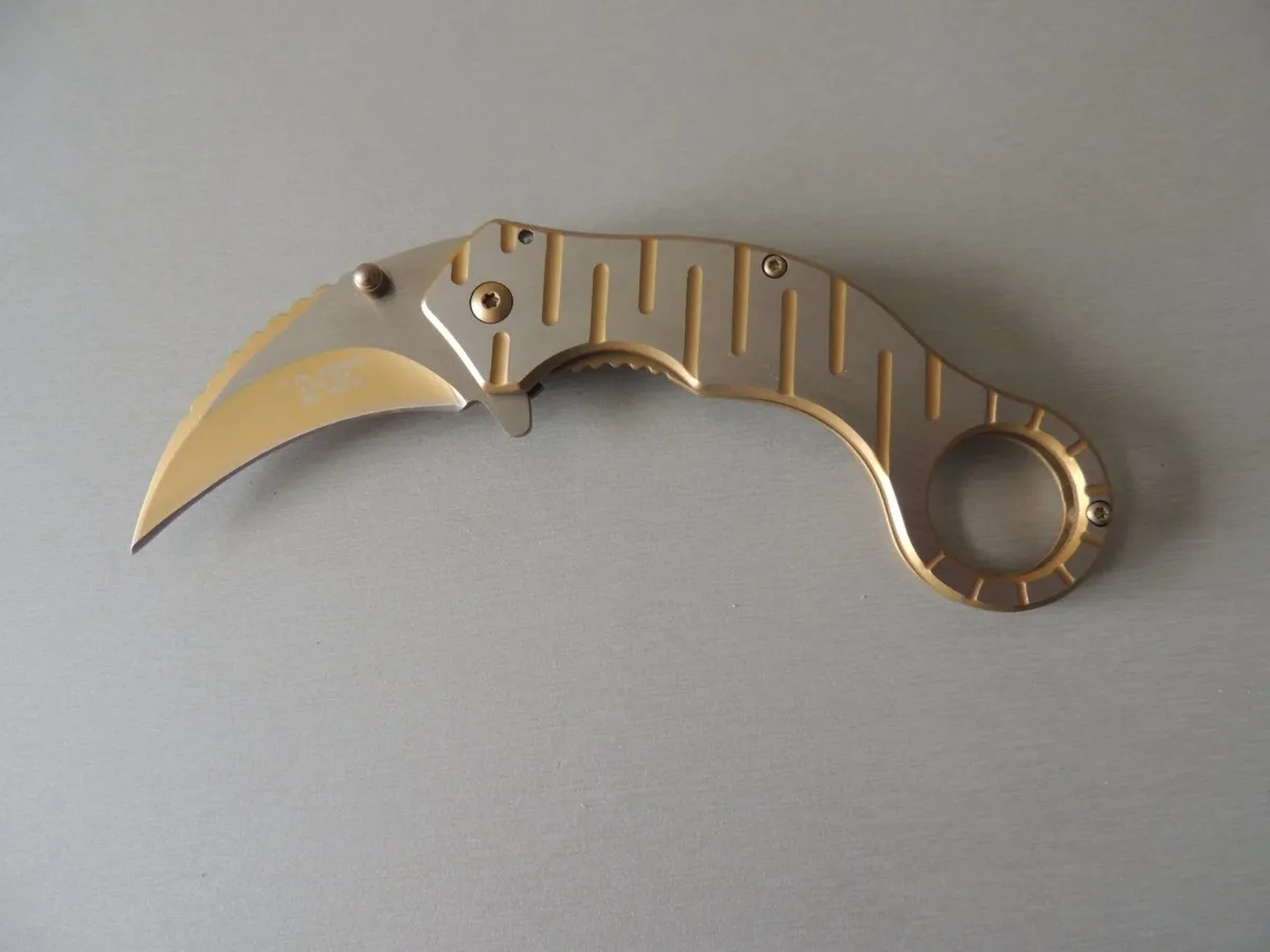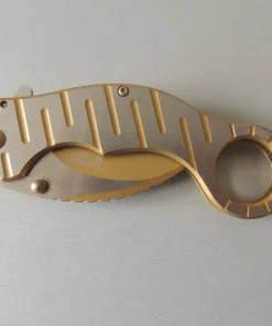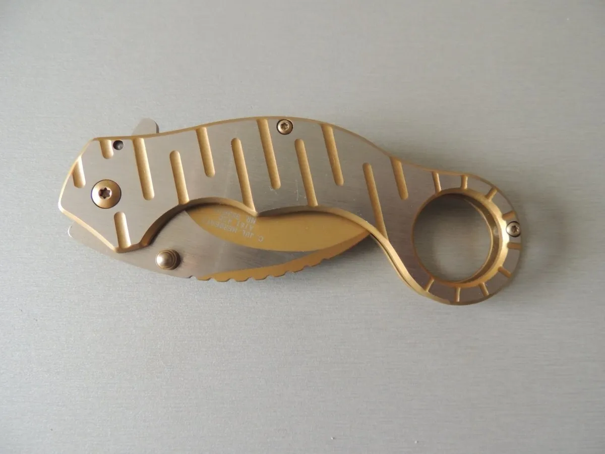 Couteaux de poche Herbertz 583612, manche décor inox et doré, lame acier inoxydable 420 de 6,5 cm à cran intérieur.