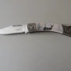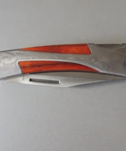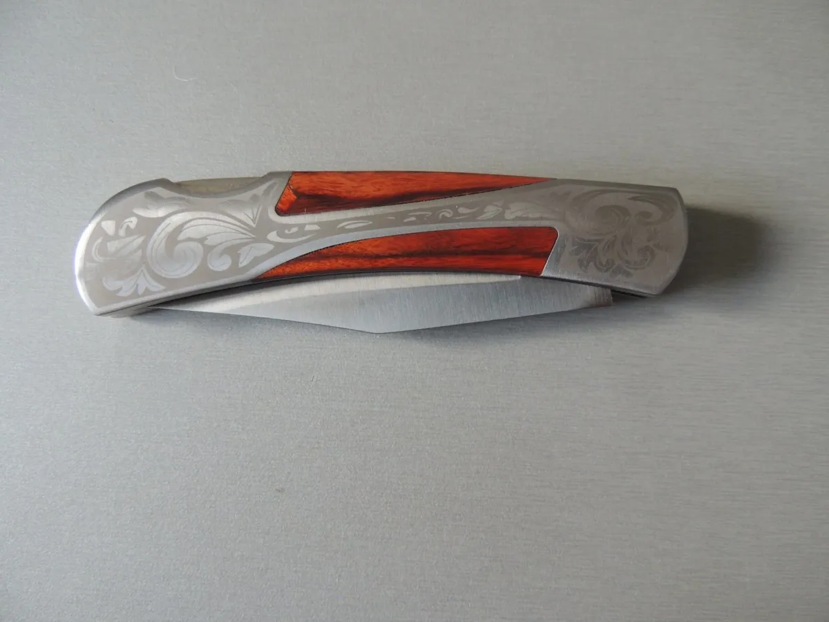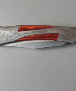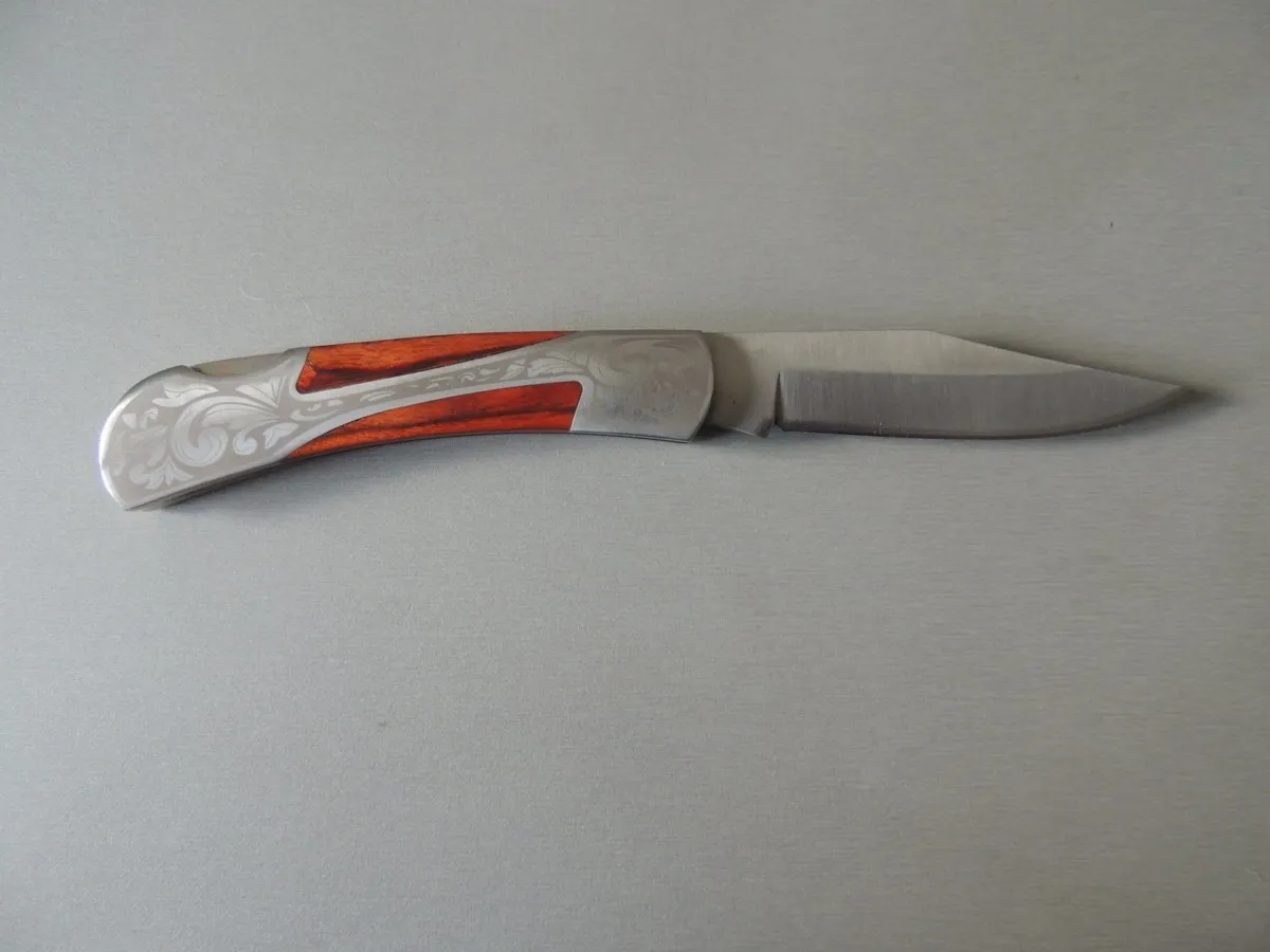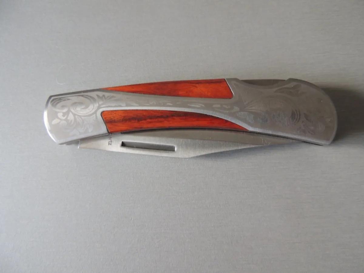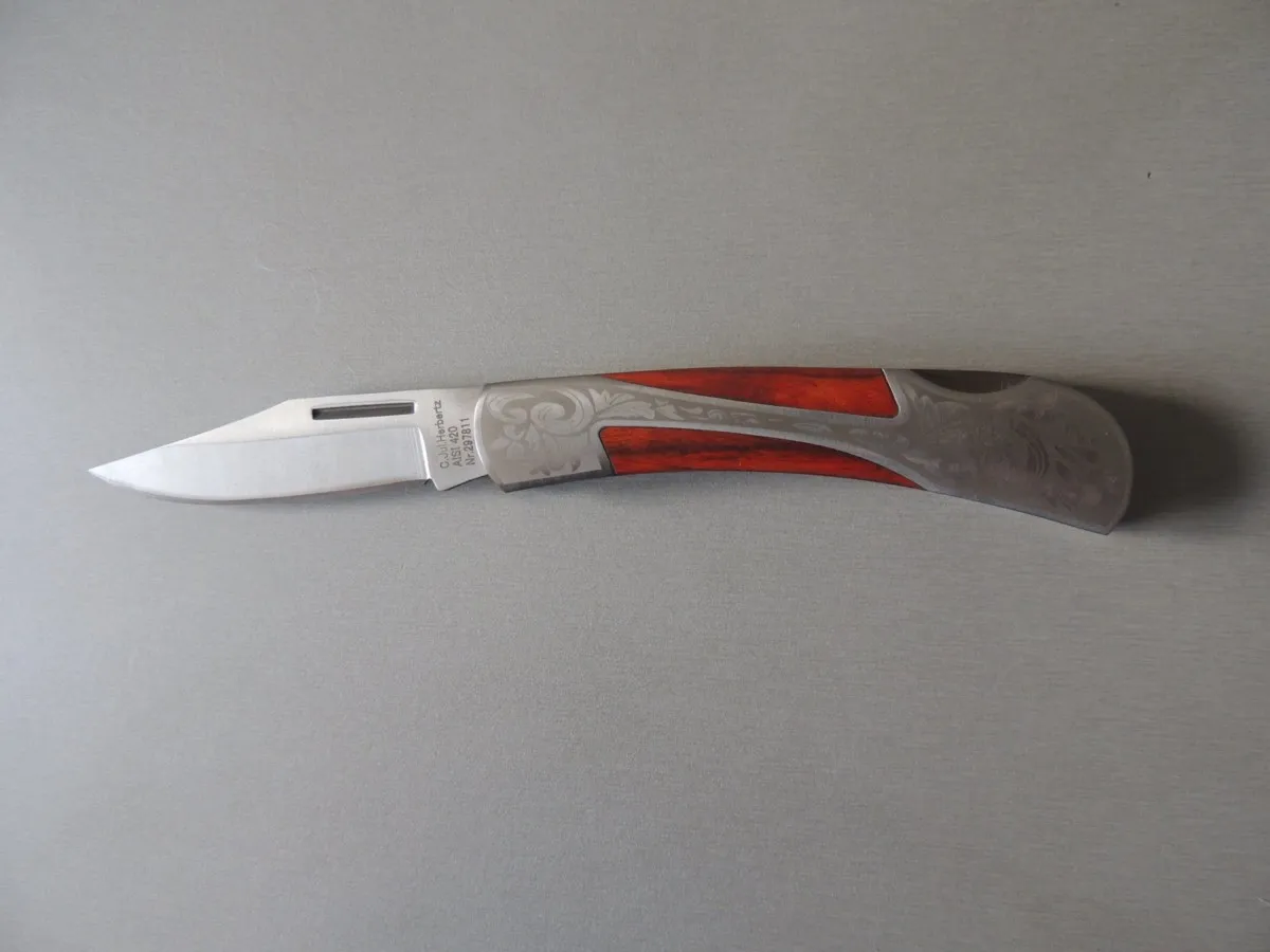 Couteau de poche Herbertz 297811, manche en acier inox avec motif gravé et pacca , lame acier inoxydable 420 à cran ( Bouton sur dessus du couteau).