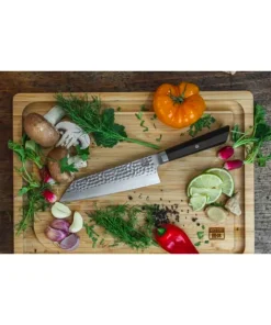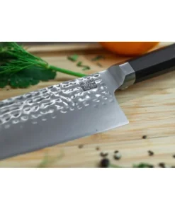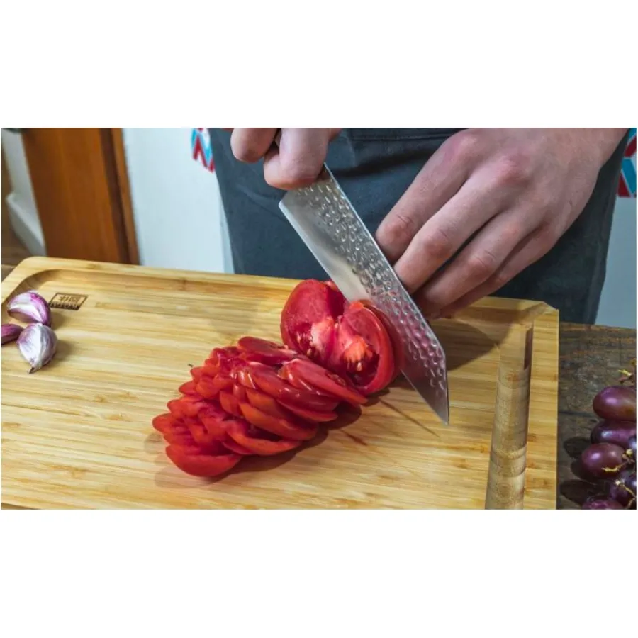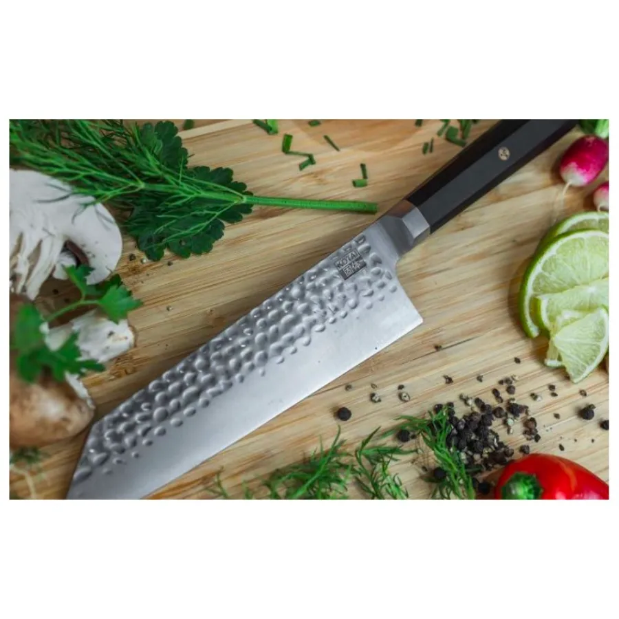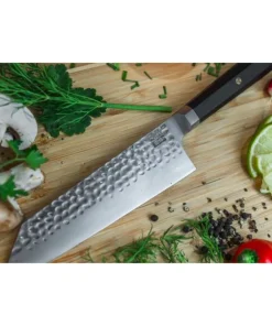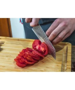 Aiguisé comme un rasoir, ce couteau Santoku fabriqué à la main offre une découpe incroyable grâce à sa lame résistante en acier inoxydable 440C.