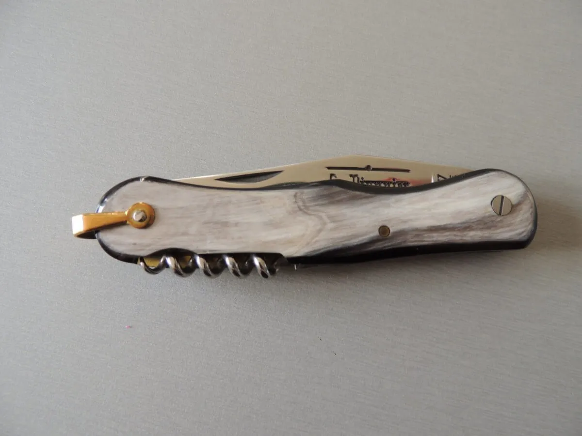 Lame avec onglet, en acier inoxydable, avec tire-bouchon.