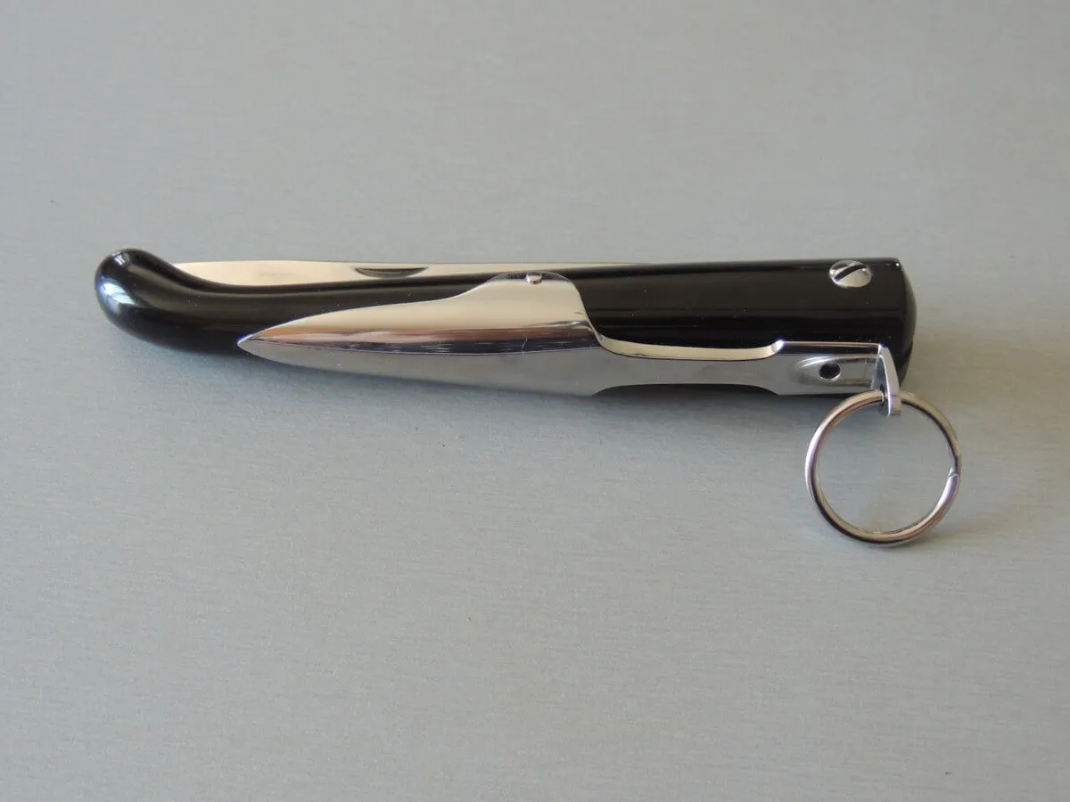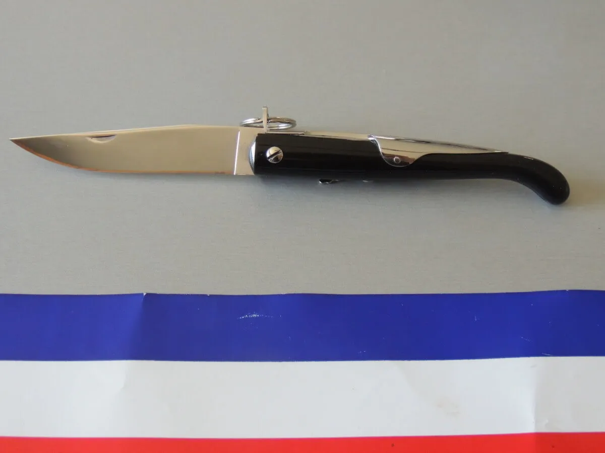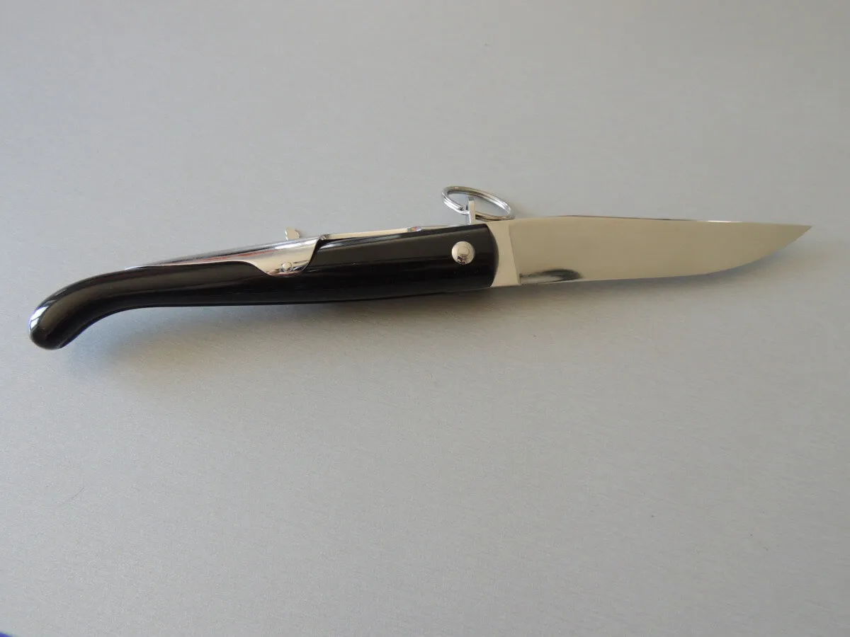 Couteau région de poche Yatagan, blocage lame cran forcé par anneau sur ressort à palme.
