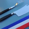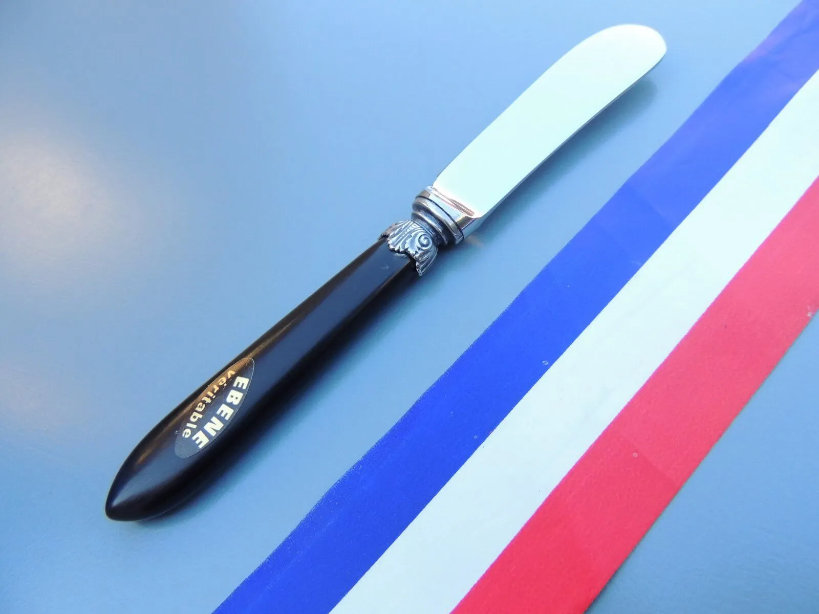 Service à découper, Corne blonde, virole argent vieillit, 32 cm