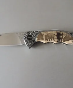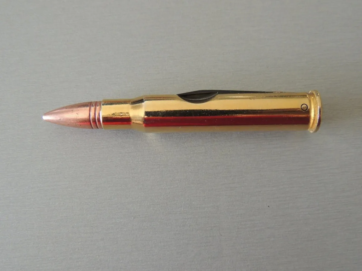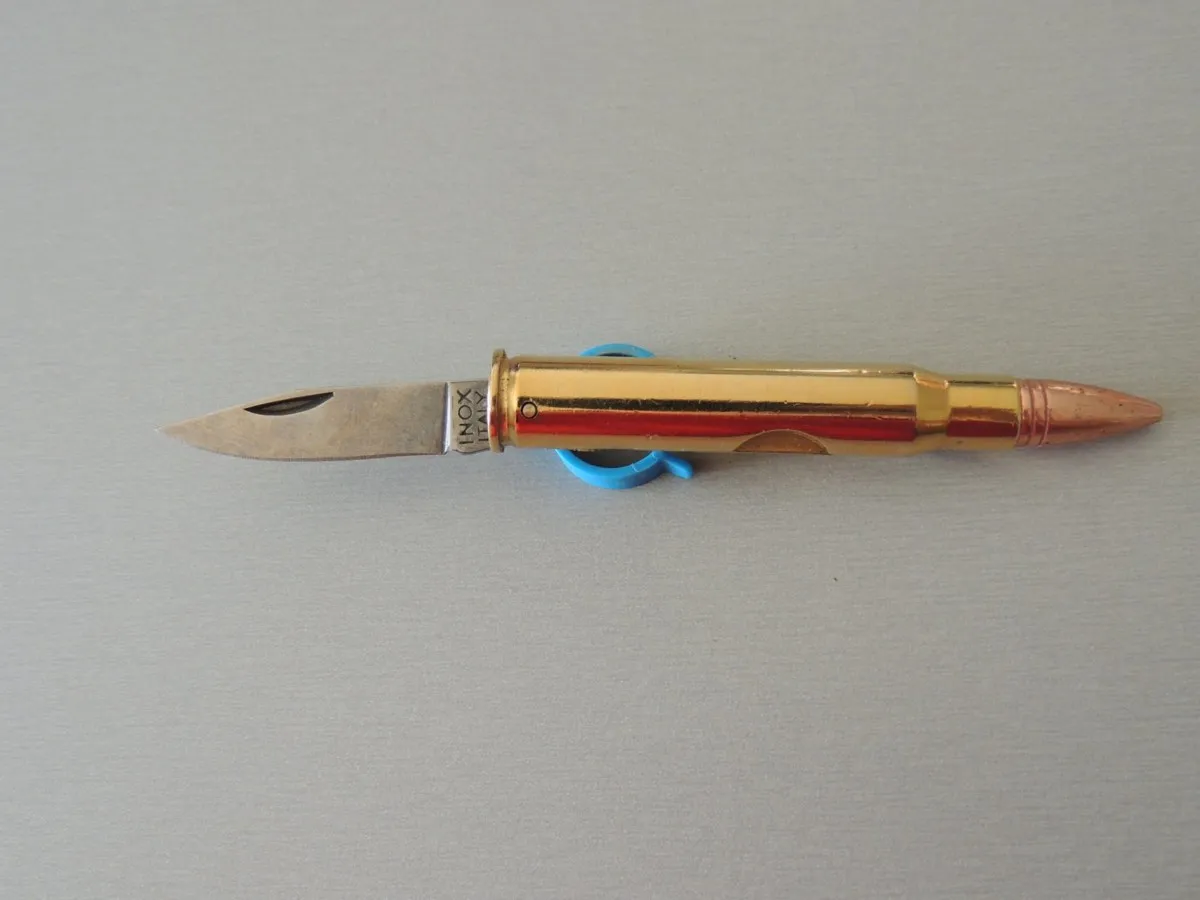 Couteaux balle de fusil, véritable balle de fusil calibre 50 recyclée en petit couteaux de 8 cm fermé et 12,5 cm ouvert.
