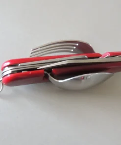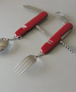 6 pièces Inoxydable: fourchette, couteau, cuillère, décapsuleur, tire bouchon, pointeaux.