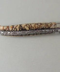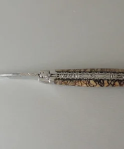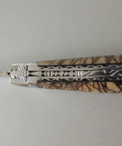 Laguiole en Aubrac, couteau artisanal, double platine, guilloché, 2 mitres.