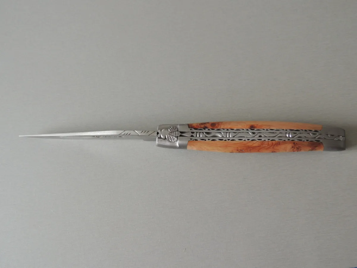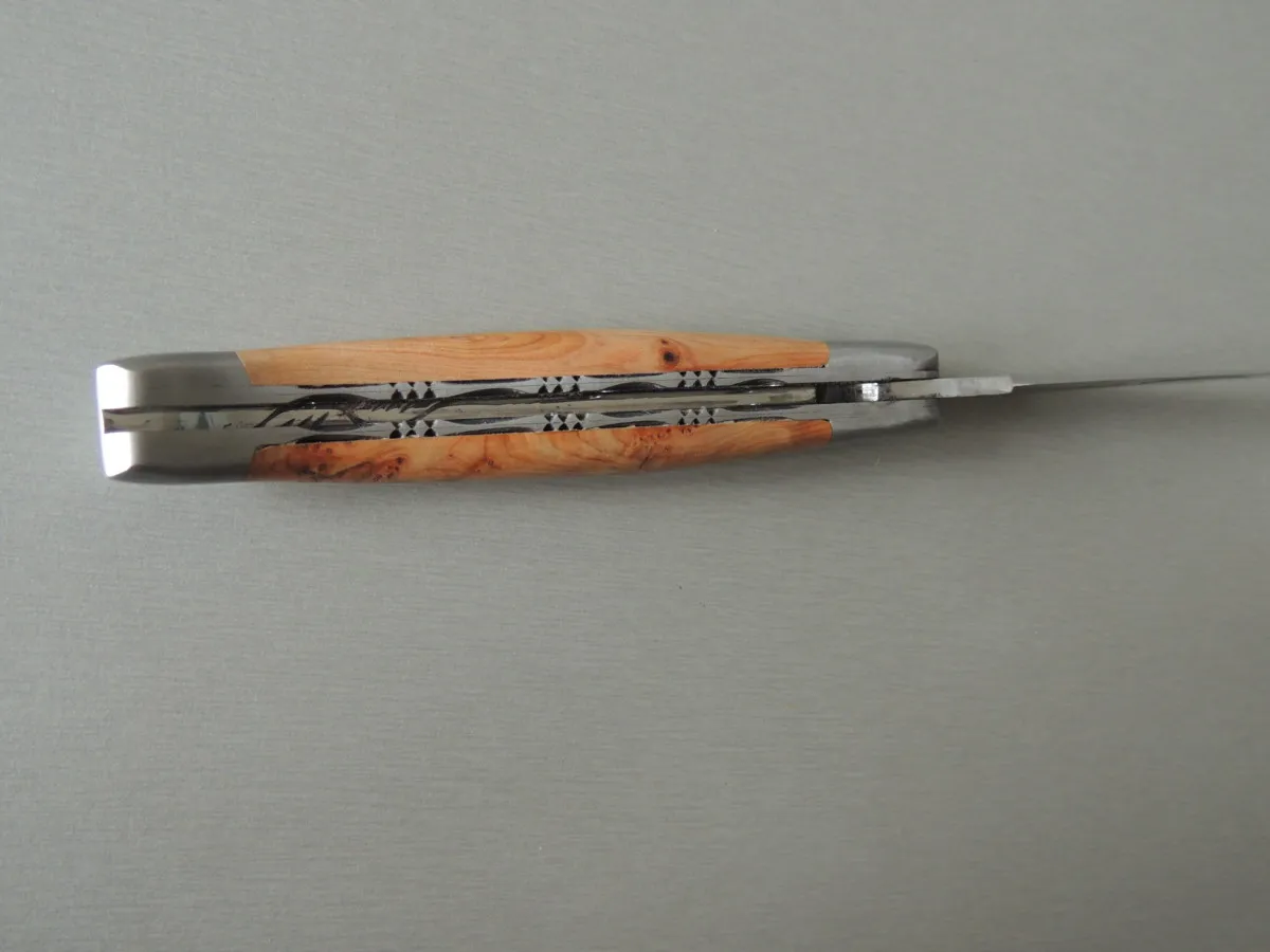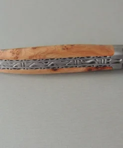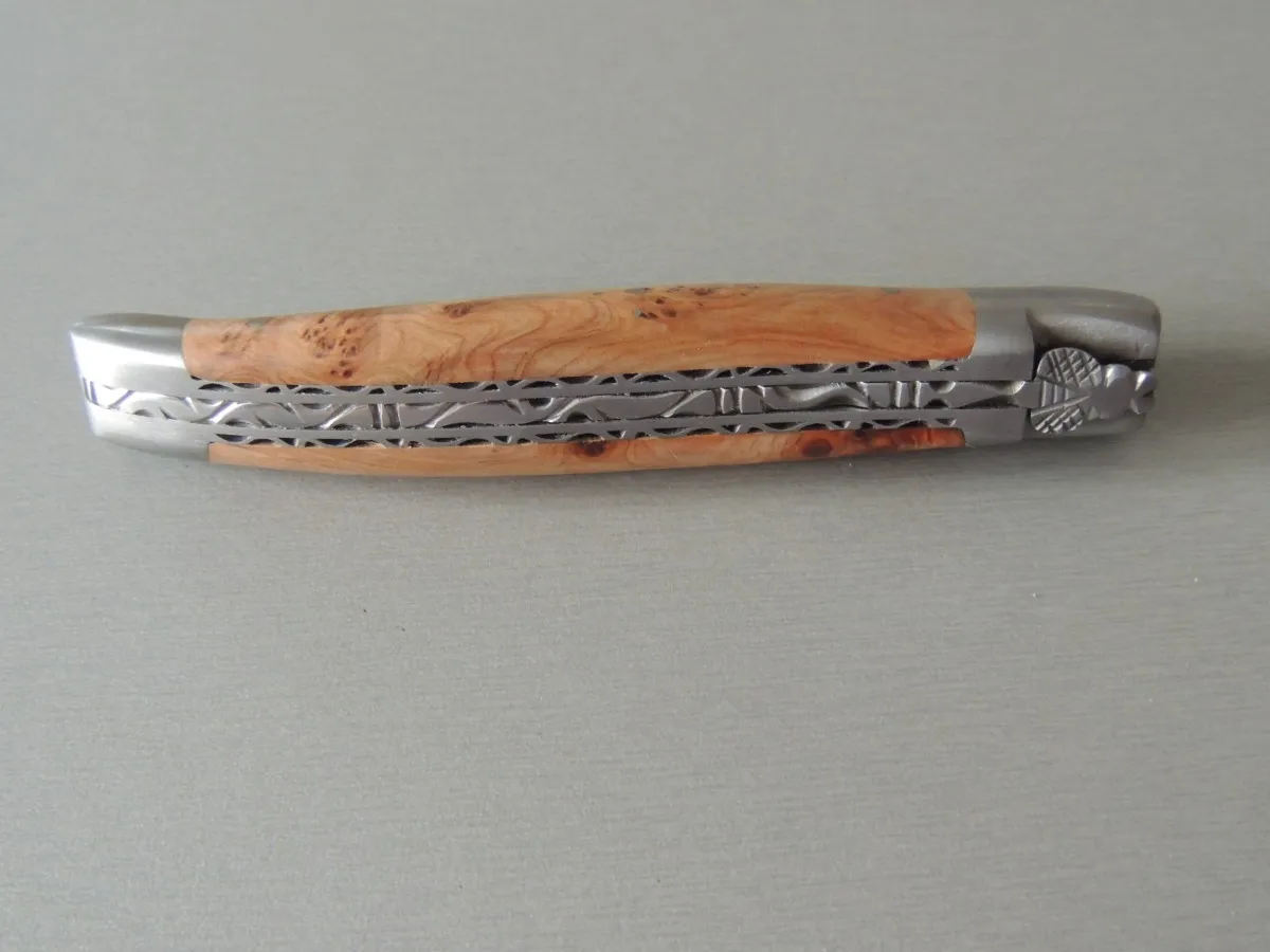 Laguiole en Aubrac, couteau artisanal, double platine, guilloché, 2 mitres.