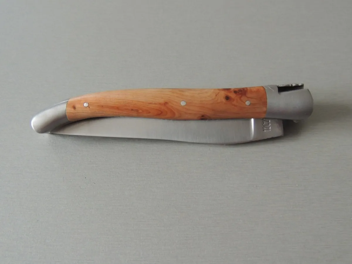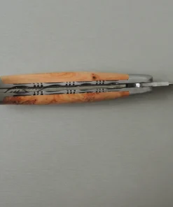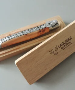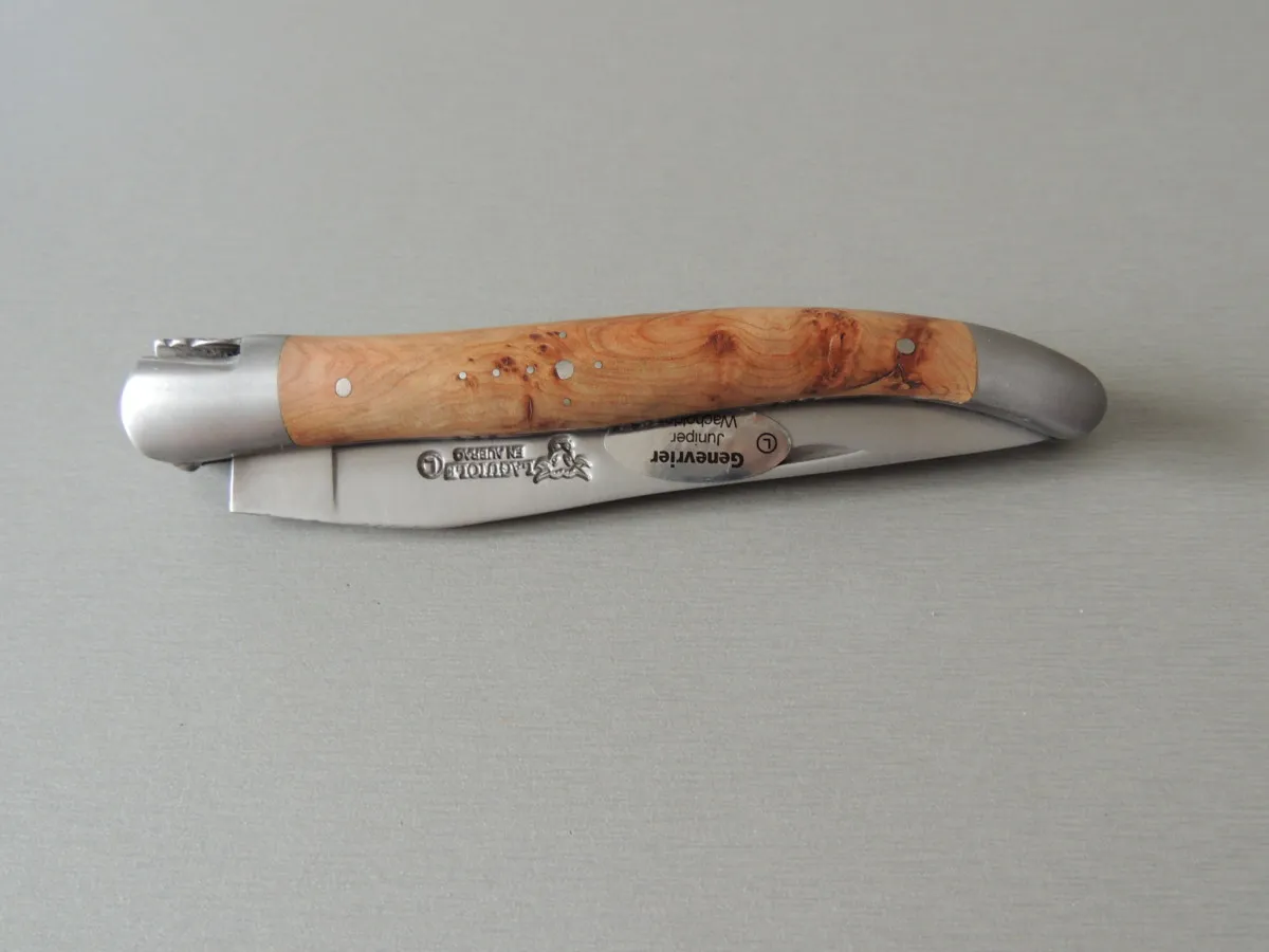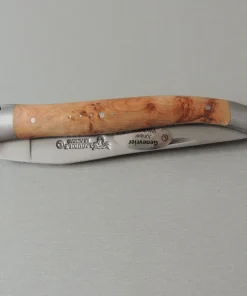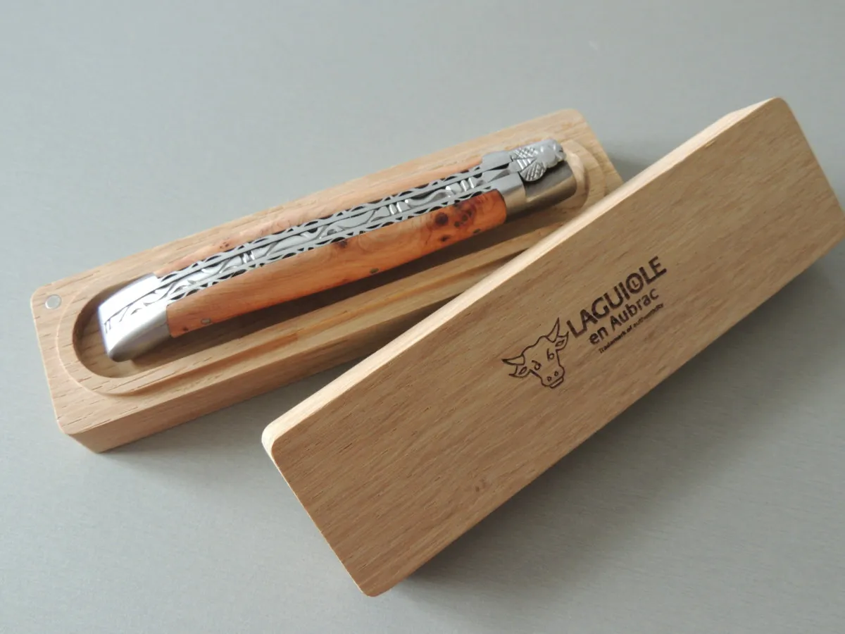 Laguiole en Aubrac, couteau artisanal, double platine, guilloché, 2 mitres.