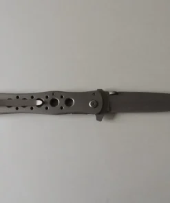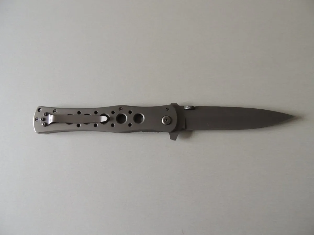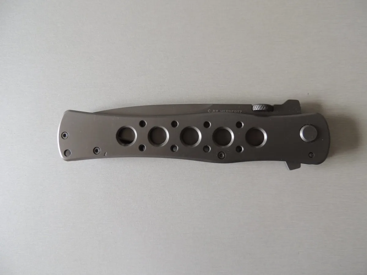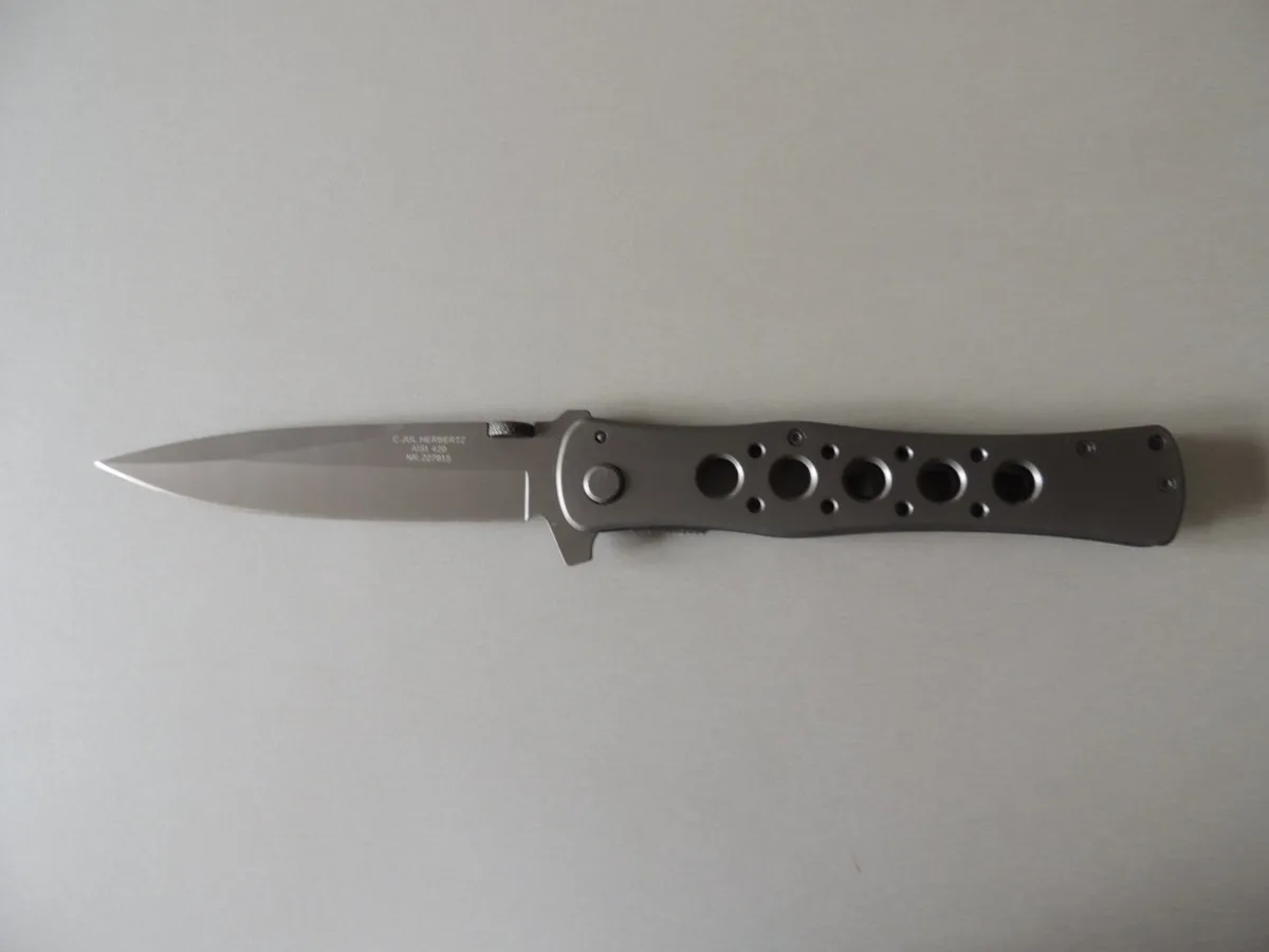 Couteaux de poche Herbertz 227815, manche à trous 15 cm métal, lame noire acier inoxydable 420 à cran intérieur et à bouton plat.