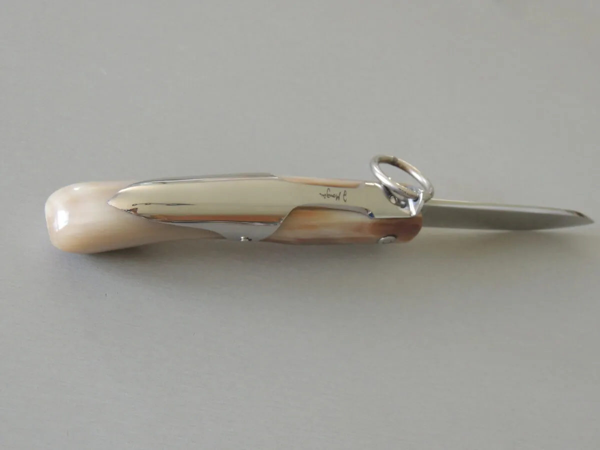 Couteaux Milan en corne blonde 12 cm par Jacques Mongin.