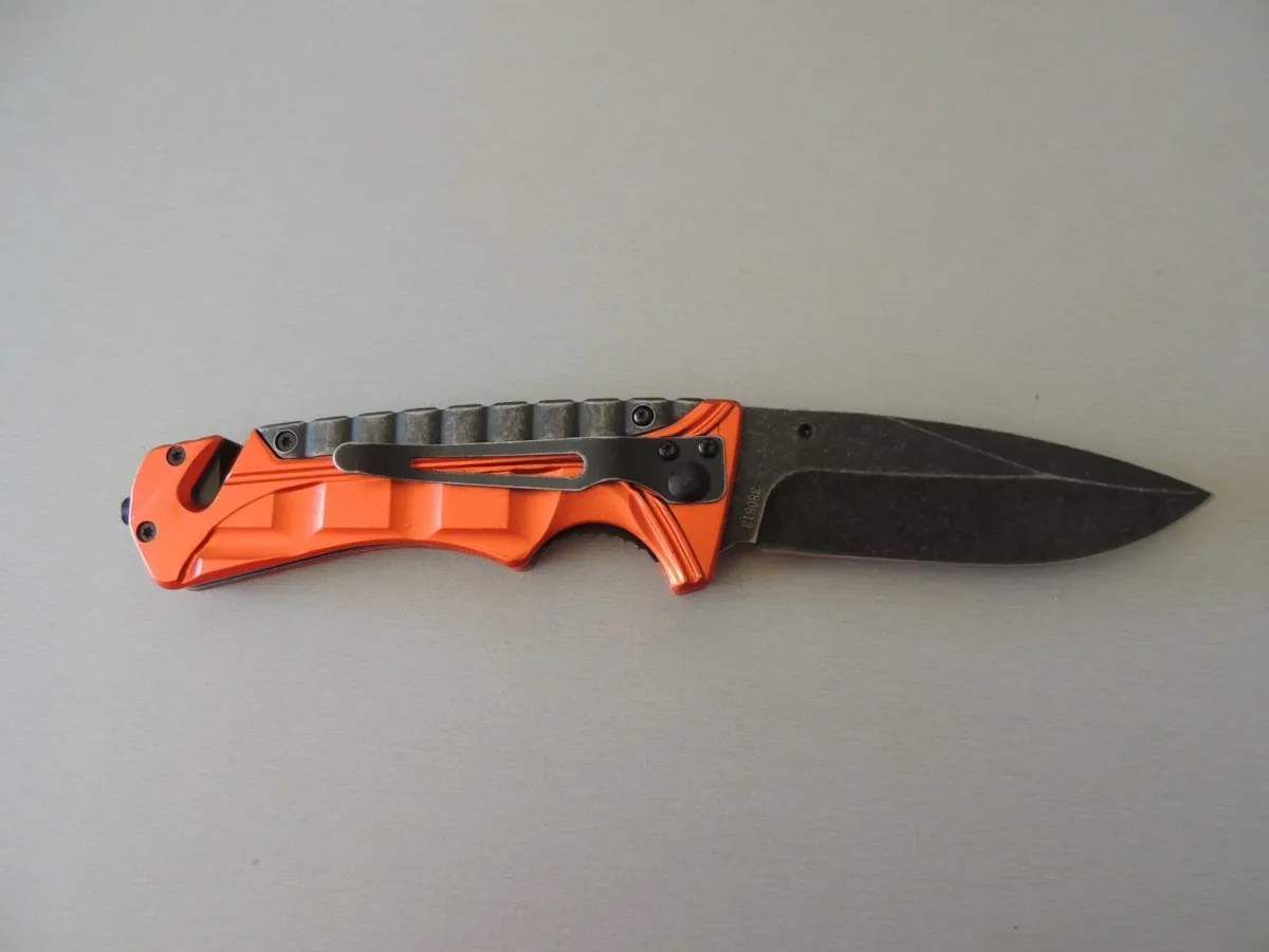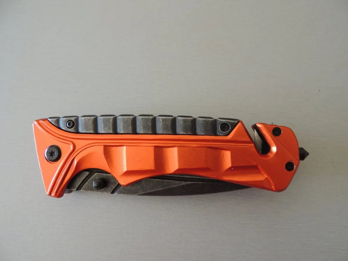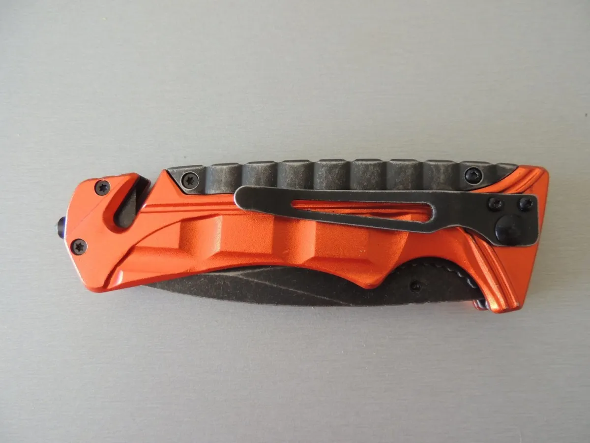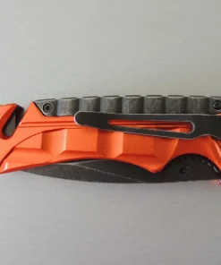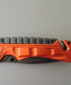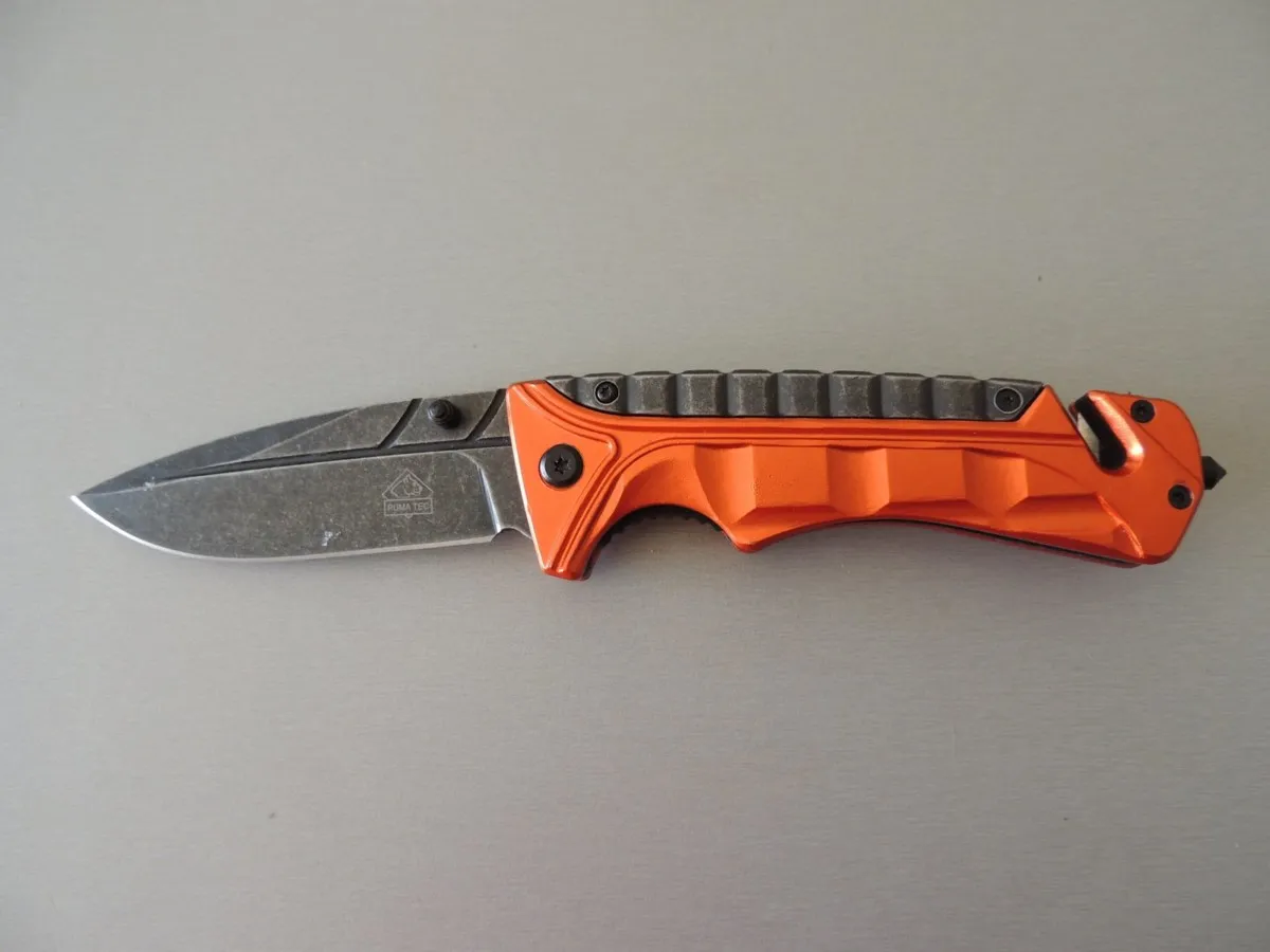 Couteaux de poche Puma-Tec lame à trou, acier 420. Manche 13 cm (orange), avec clip, pic brise vitre en bout et coupe-ceinture de sécurité.