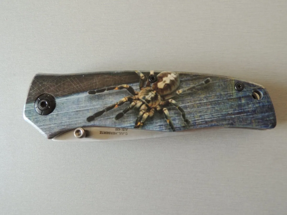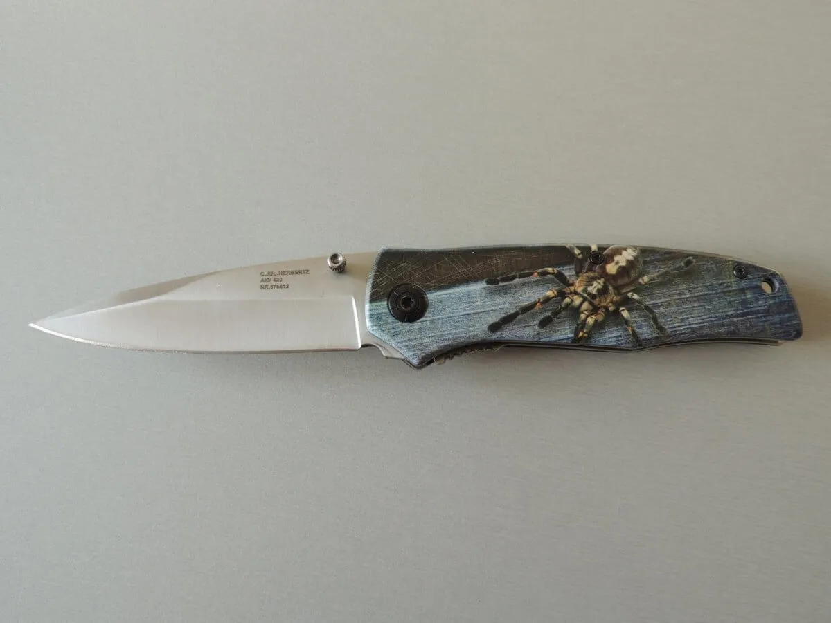 Couteaux de poche Herbertz 575412, manche alu motif tarentule , lame inoxydable.