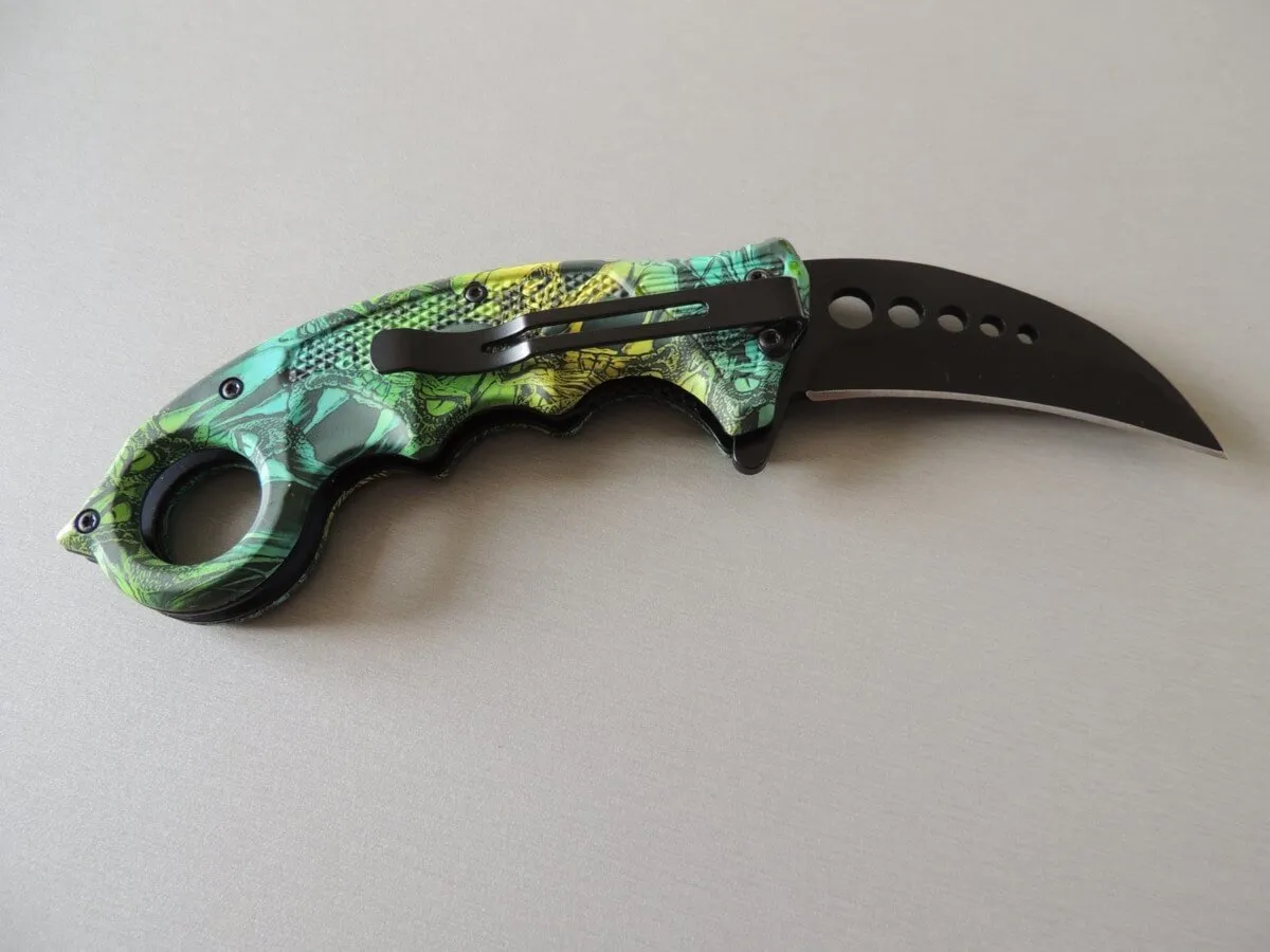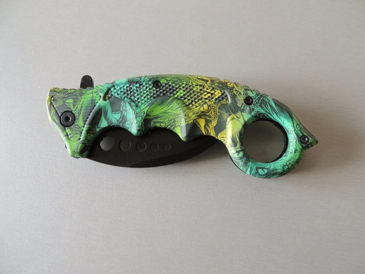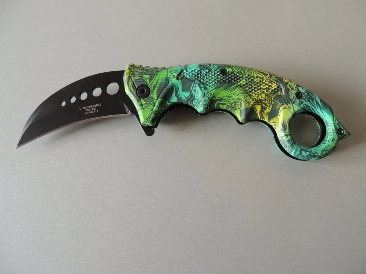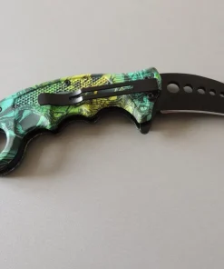 Couteaux de poche Herbertz 572613 vert motif serpent lame courbe noir inox.