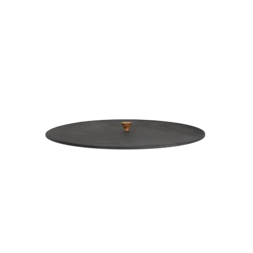 Le couvercle est en acier thermo-laqué noir avec une poignée en bois d’acajou. Il est utilisé pour recouvrir complètement la plaque de votre OFYR lorsque vous ne vous en servez pas (OFYR froid).