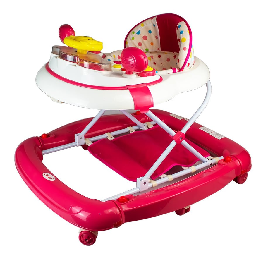 - CONFORTABLE : ce trotteur pour bébé dispose d’une assise molletonnée confortable et de deux roues directrices