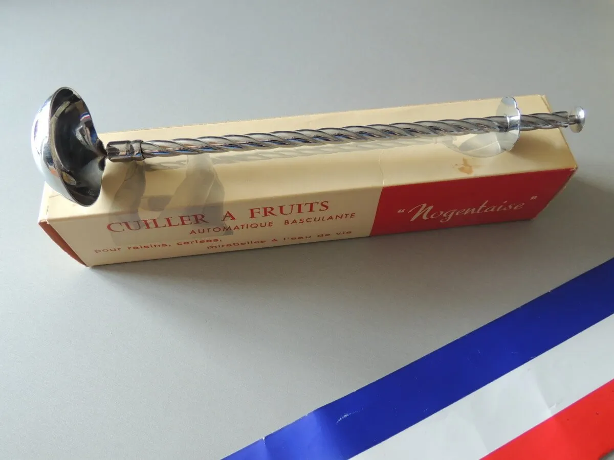 Voici une cuillère à fruit ancienne de 25cm fabriquée à Nogent de la marque « Nogentaise », ce produit n’ai plus fabriqué.