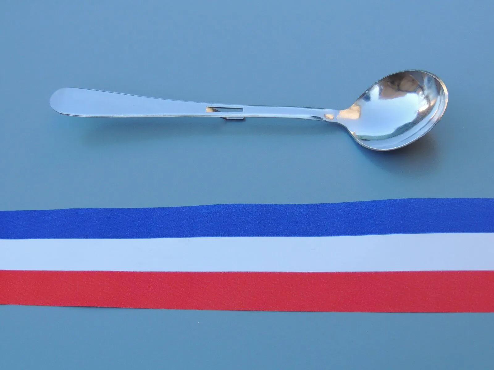 Grande cuillère avec crochet intégré au manche pour ne pas tomber dans le pot.