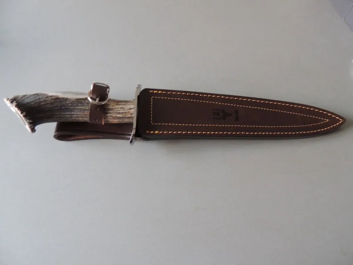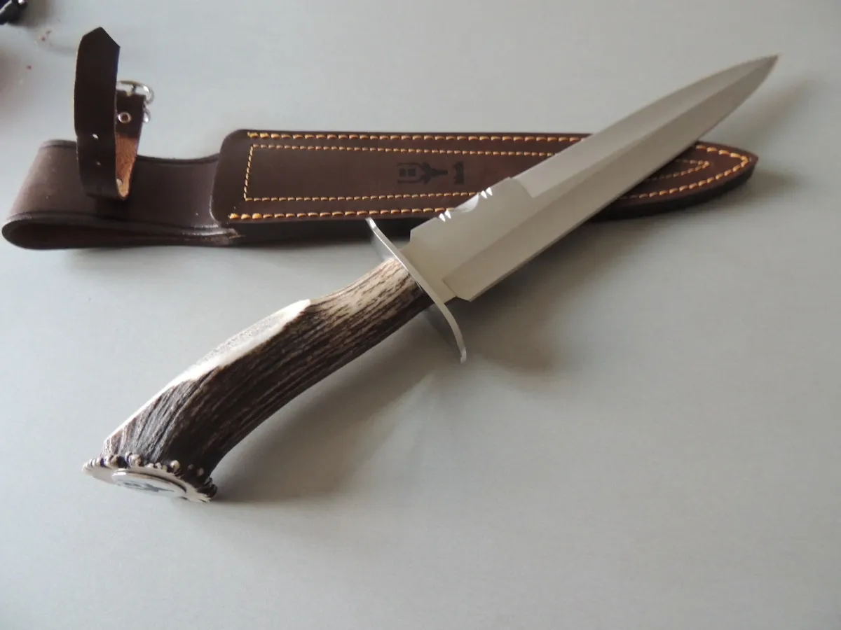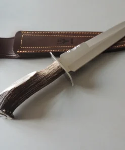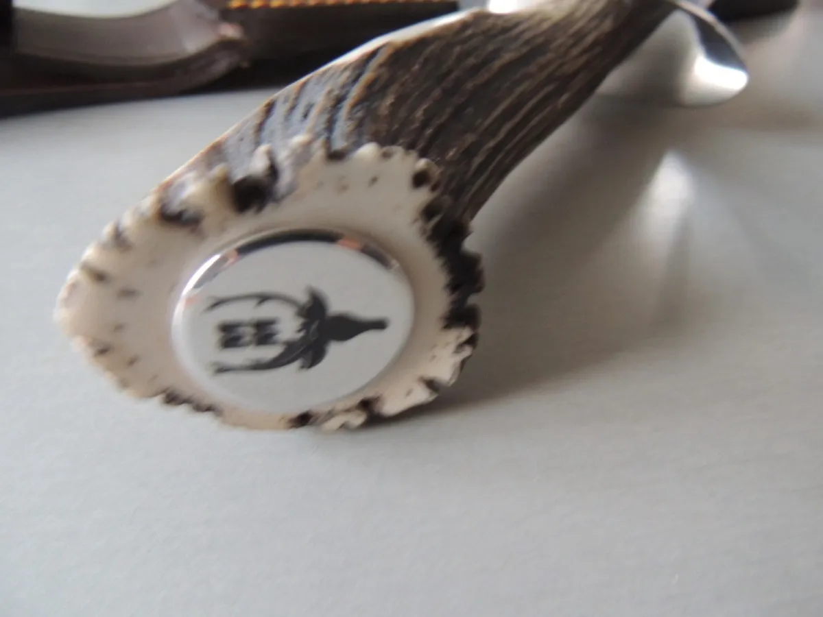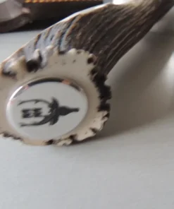 Manche en bois de cerf avec soie traversante motif cerf.