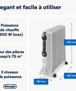 Delonghi trrs1225 Radiateur Radia  Serie  S (pour pièces jusqu’à 75 m³, 2500 W) Gris & TRRS0920 Radias Radiateur bain d’huile, Gris