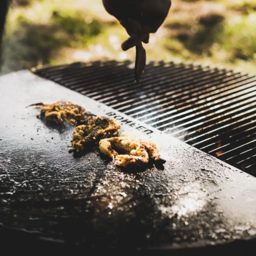 Transformez votre bol à feu Bonbowl 100cm en plaque de cuisson au feu de bois avec cette demi plancha en acier carbone de 6mm d’épaisseur.