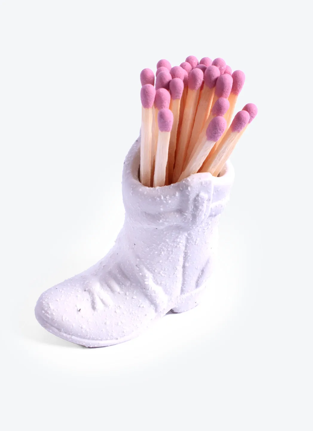 Design Works Allumettes Bottes Cowboy en Céramique Blanche