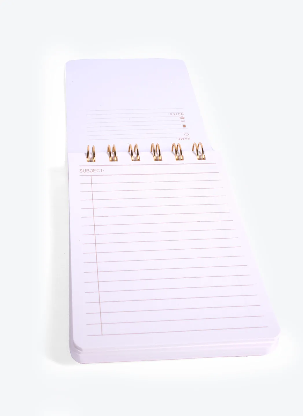 Petit bloc-notes à spirale, parfait pour les gribouillages rapides en déplacement.