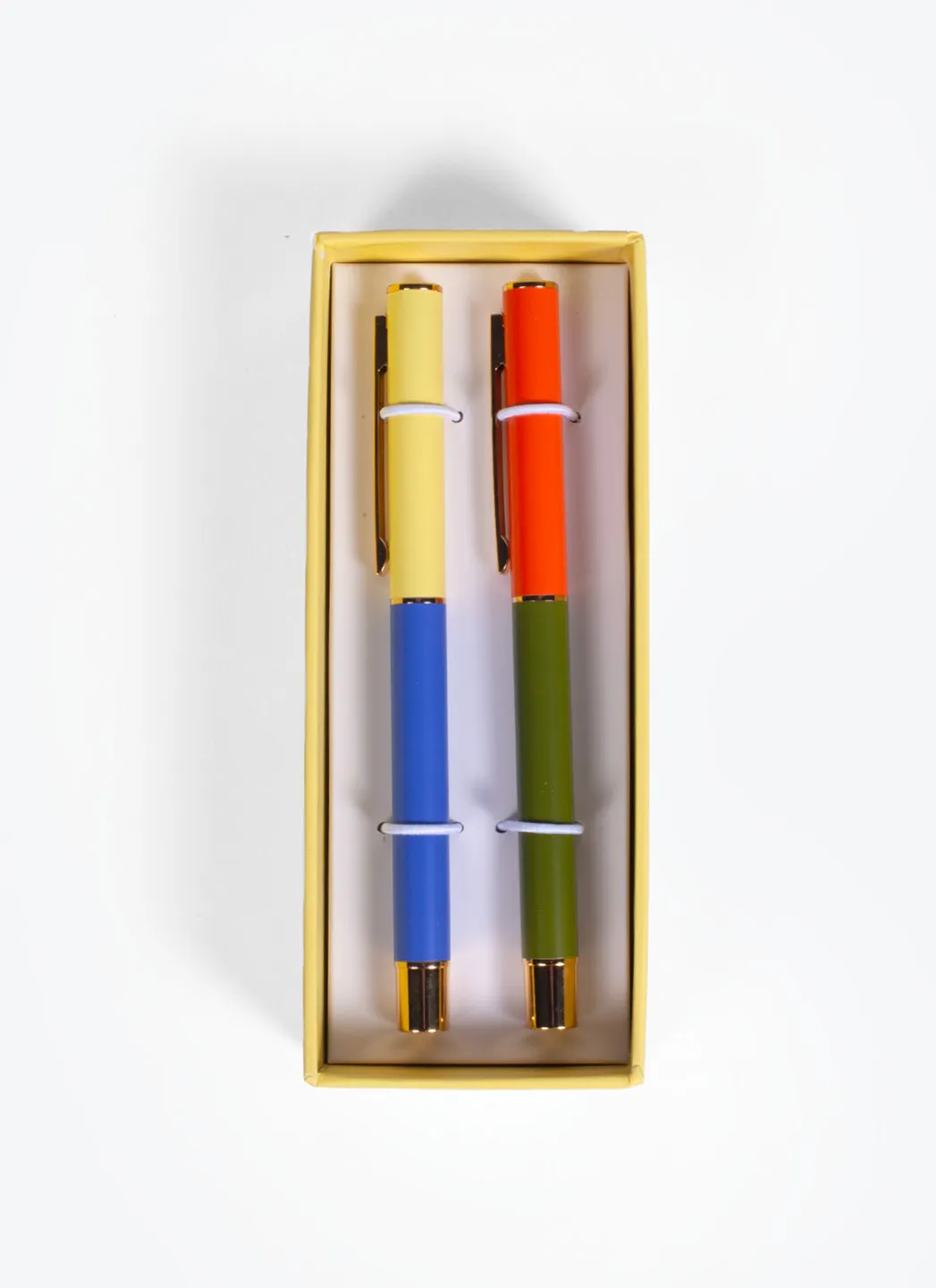 L’angoisse de la page blanche, ça craint. Vous savez ce qui ne l’est pas ? Le blocage de la couleur. Plus précisément : Stylos Color Block. Egayez votre quotidien avec nos ustensiles d’écriture aux couleurs vives. Chaque set comprend deux stylos, chacun rempli d’une riche encre noire et décoré de couleurs vives et contrastées avec une finition mate.
