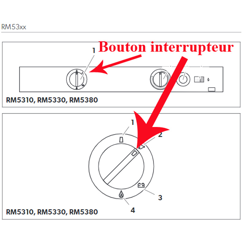 Bouton vendu à l’unité du selecteur du mode d’énergie (se trouvant à gauche sur la façade du réfrigérateur),