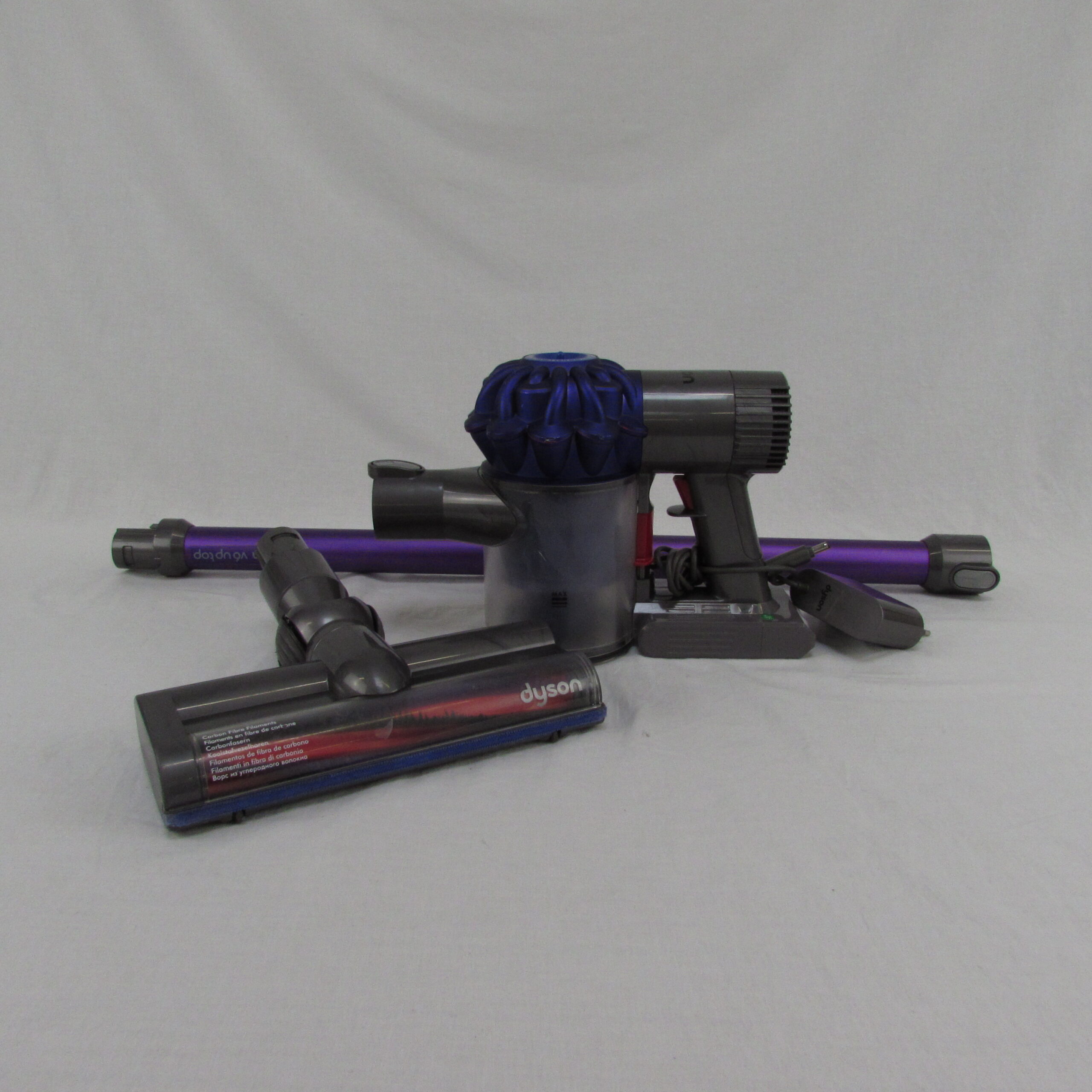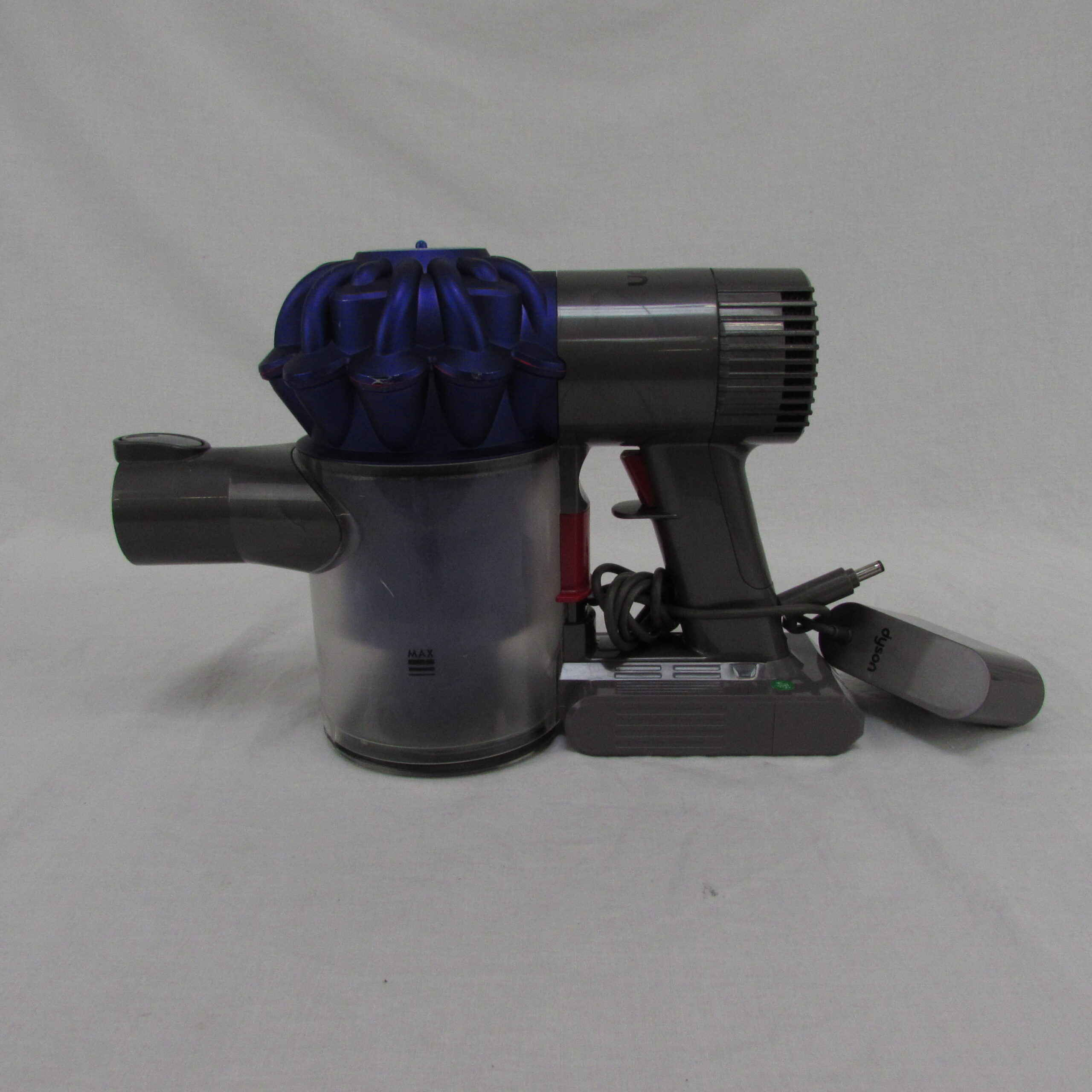 Le DYSON V6 – SV03 – Aspirateur Balai est un appareil d’occasion qui présente quelques rayures et traces d’usure sur le corps et la cuve plastique, mais reste en bon état esthétique dans l’ensemble. Les accessoires inclus, à savoir le tube fixe et la brosse, sont également en bon état malgré quelques marques d’utilisation. Le chargeur est fourni avec le produit.