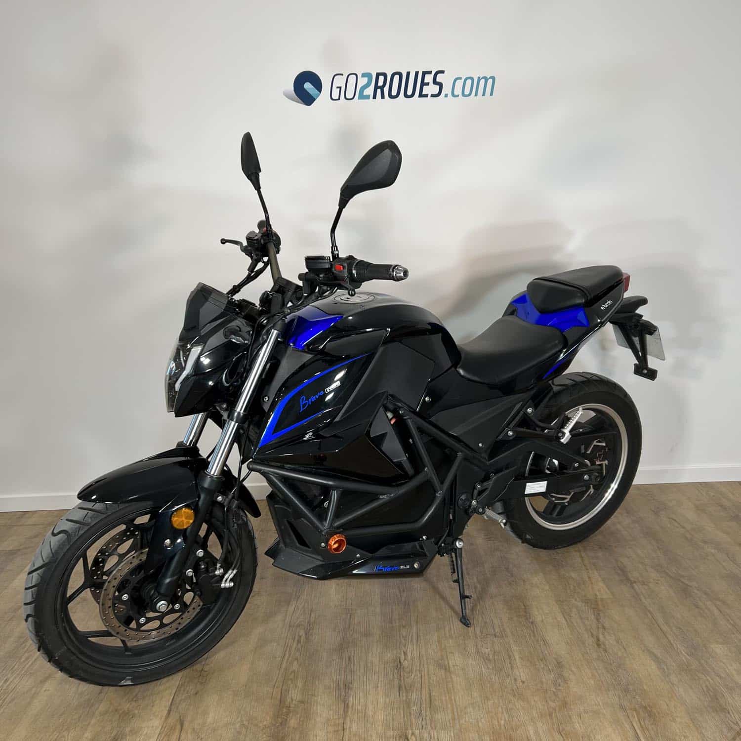 L’Ebroh Bravo GLE Pro Série Spéciale Noire Bleue est une moto électrique en série limitée à 12 exemplaires. Elle est identique et présente les mêmes qualités que l’Ebroh Bravo GLE Pro de série, mais sa couleur est unique. Et, elle reçoit les barres de renfort officielles.