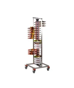 Ce porte assiettes dressées escamotable est très pratique pour optimiser l’espace disponible en cuisine, chambre froide, etc lors de la préparation de buffet. Cette échelle a assiette peut contenir 84 assiettes. Porte assiette en inox avec 4 roues pivotantes, desquelles 2 avec frein à pied. Le porte assiette se replie pour un encombrement minimum lorsqu’il est inutilisé.