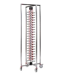 Ce porte assiettes dressées escamotable est très pratique pour optimiser l’espace disponible en cuisine, chambre froide, etc lors de la préparation de buffet. Cette échelle a assiette peut contenir 84 assiettes. Porte assiette en inox avec 4 roues pivotantes, desquelles 2 avec frein à pied. Le porte assiette se replie pour un encombrement minimum lorsqu’il est inutilisé.