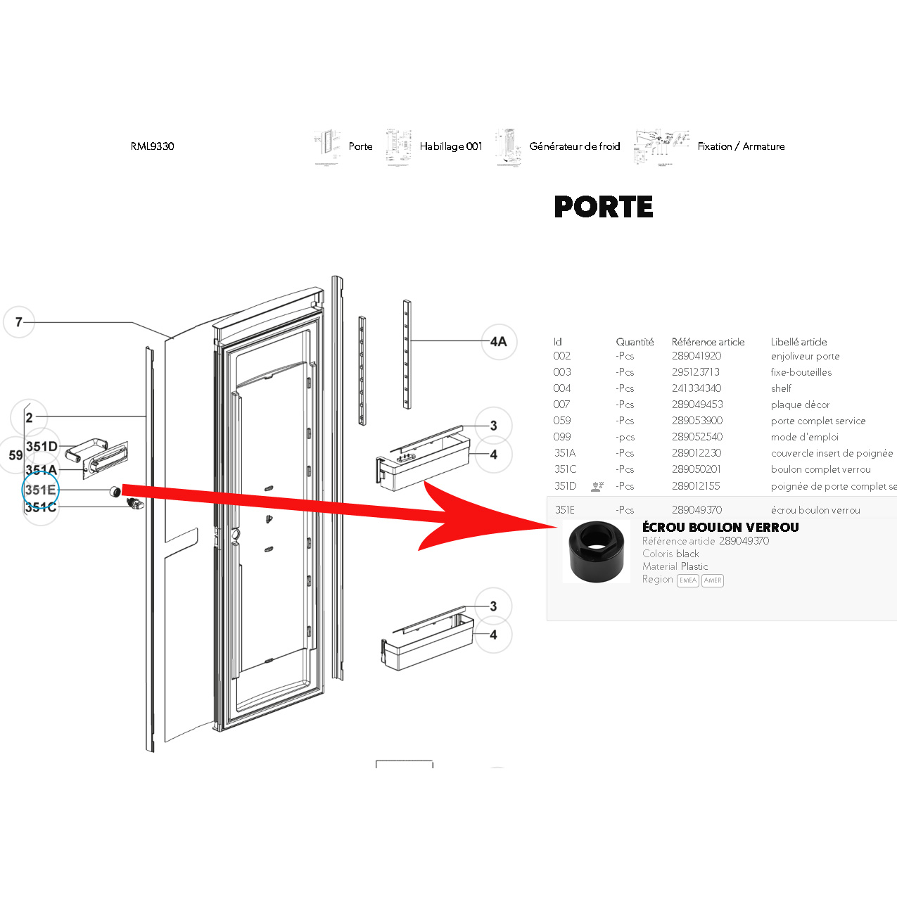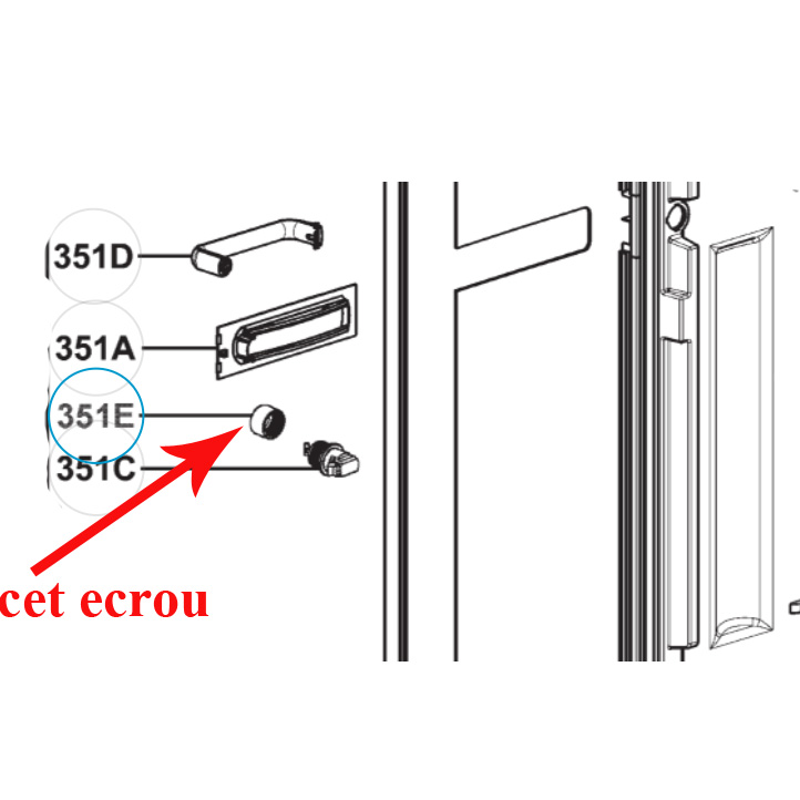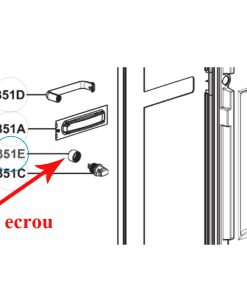 Pour vérifier si votre refrigerateur comporte bien cet ecrou qui permet de fixer le verrou de la porte, merci de nous contacter et munissez vous pour vérifier la compatibilité grace à votre numéro de produit de votre appareil Dometic (qui se trouve sur l’étiquette signalétique).